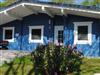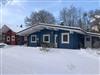 2 Finnische Holzblockhäuser, mal in Rot mal in Blau.