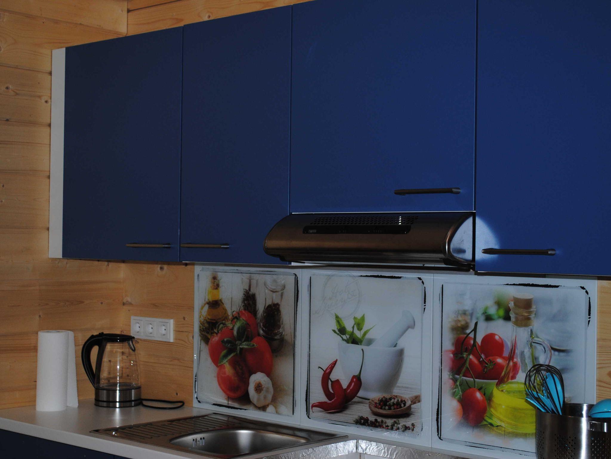 In der Küche findet man vom Topf über die Pfanne und Wasserkocher auch Besteck und Geschirr für 8-10 Personen.