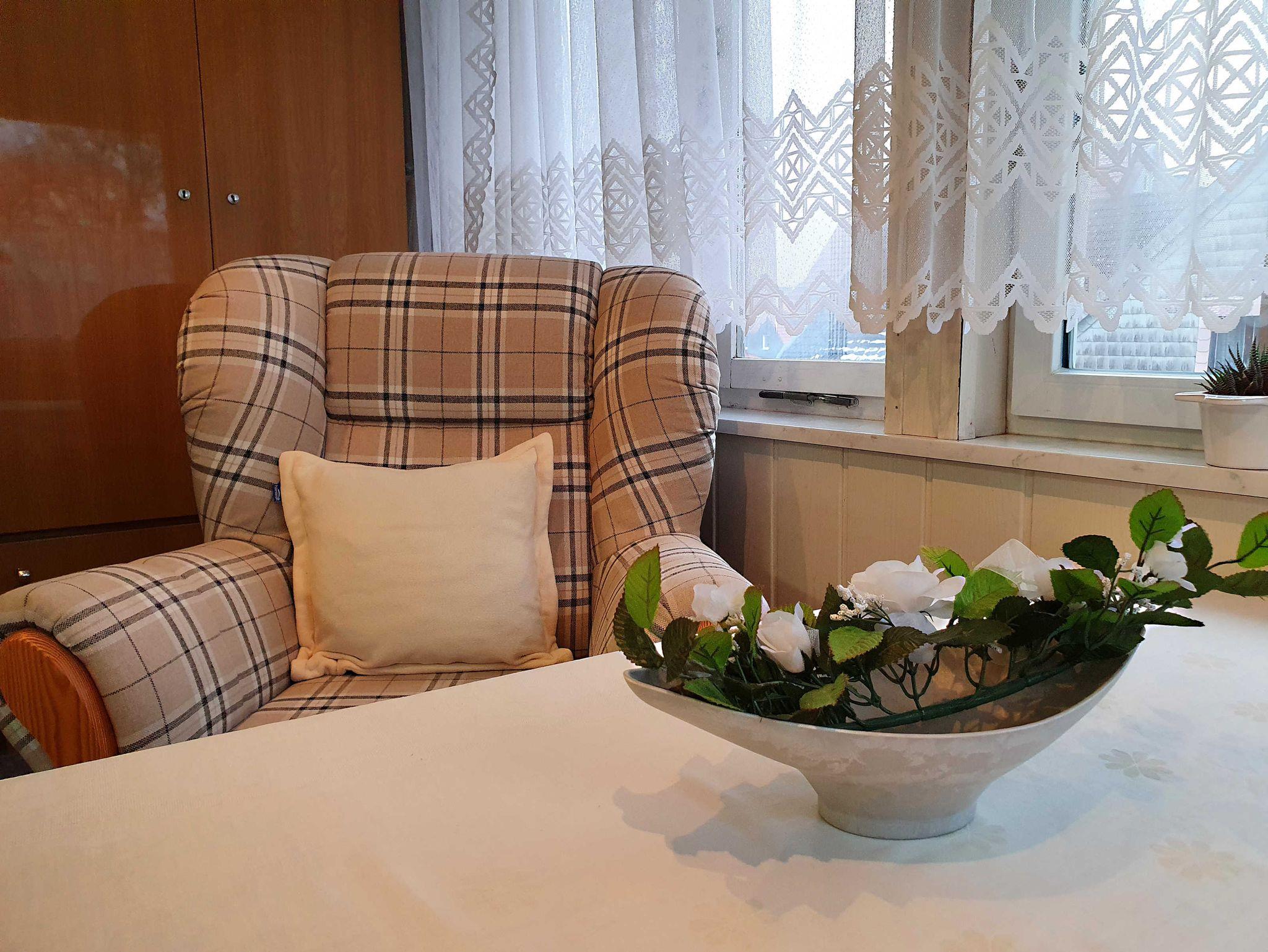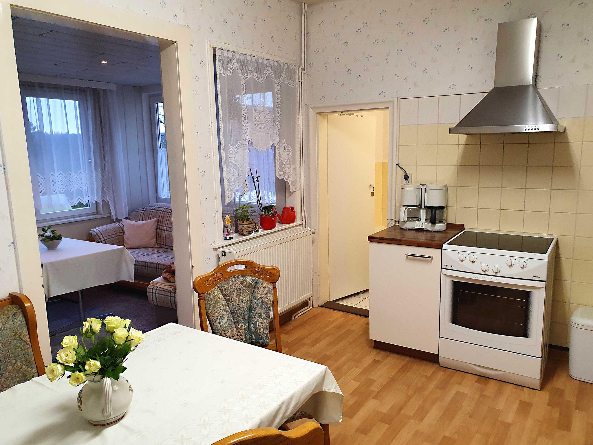 Die Ferienwohnung befindet sich im Erdgeschoss des Hauses und bietet den Gästen eine Wohnfläche von ca.77 qm. Es stehen zwei separate Schlafzimmer, ein Wohnzimmer, eine Wohnküche mit angrenzender Veranda sowie WC und Badewanne zur Verfügung.