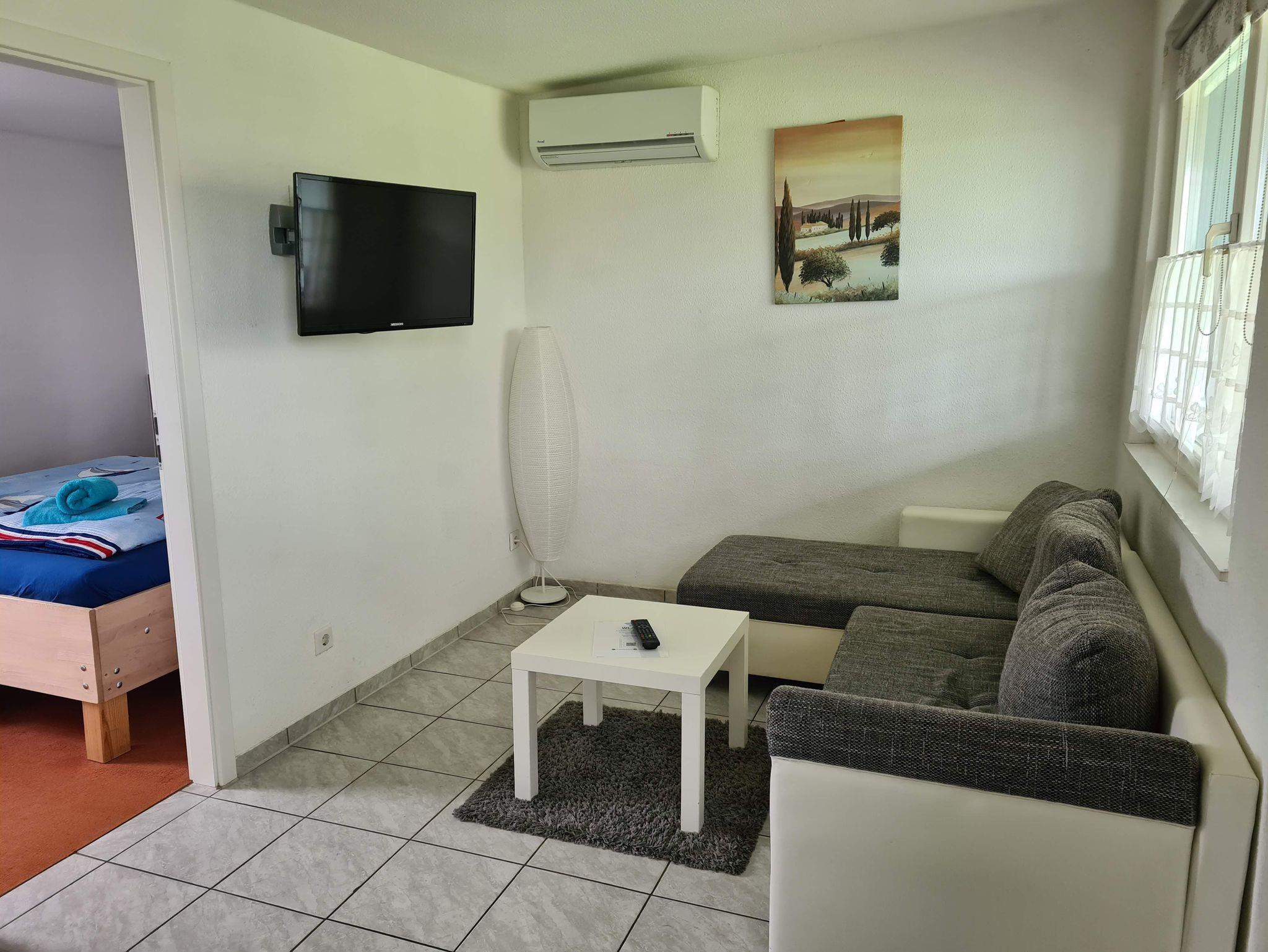 In der Ferienwohnung befindet sich ein großer Wohnbereich mit Küche und einem separaten Schlafzimmer. In der bestens ausgestatteten Küche können Sie einfach und schnell ihr Lieblingsessen zaubern. Die hochwertigen Geräte in der Küche erledigen die alltäglichen Aufgaben für Sie. Das moderne Bad ist mit einer Dusche, WC und Waschbecken ausgestattet. Vom Wohnzimmer aus kommen Sie auf die überdachte Terrasse mit einem Strandkorb und einer schönen Sitzecke mit dem Blick in den Garten.
