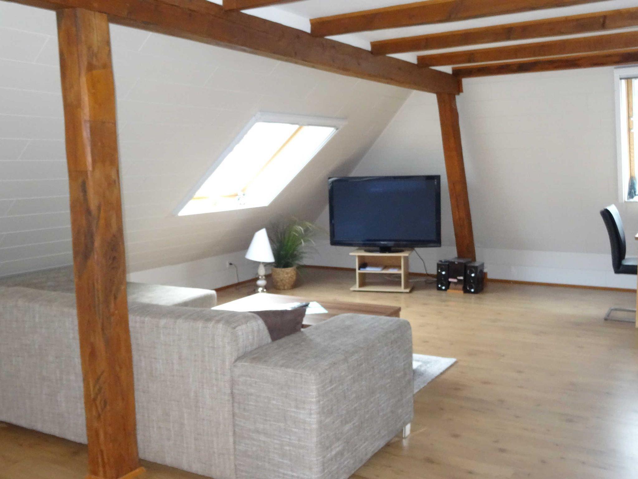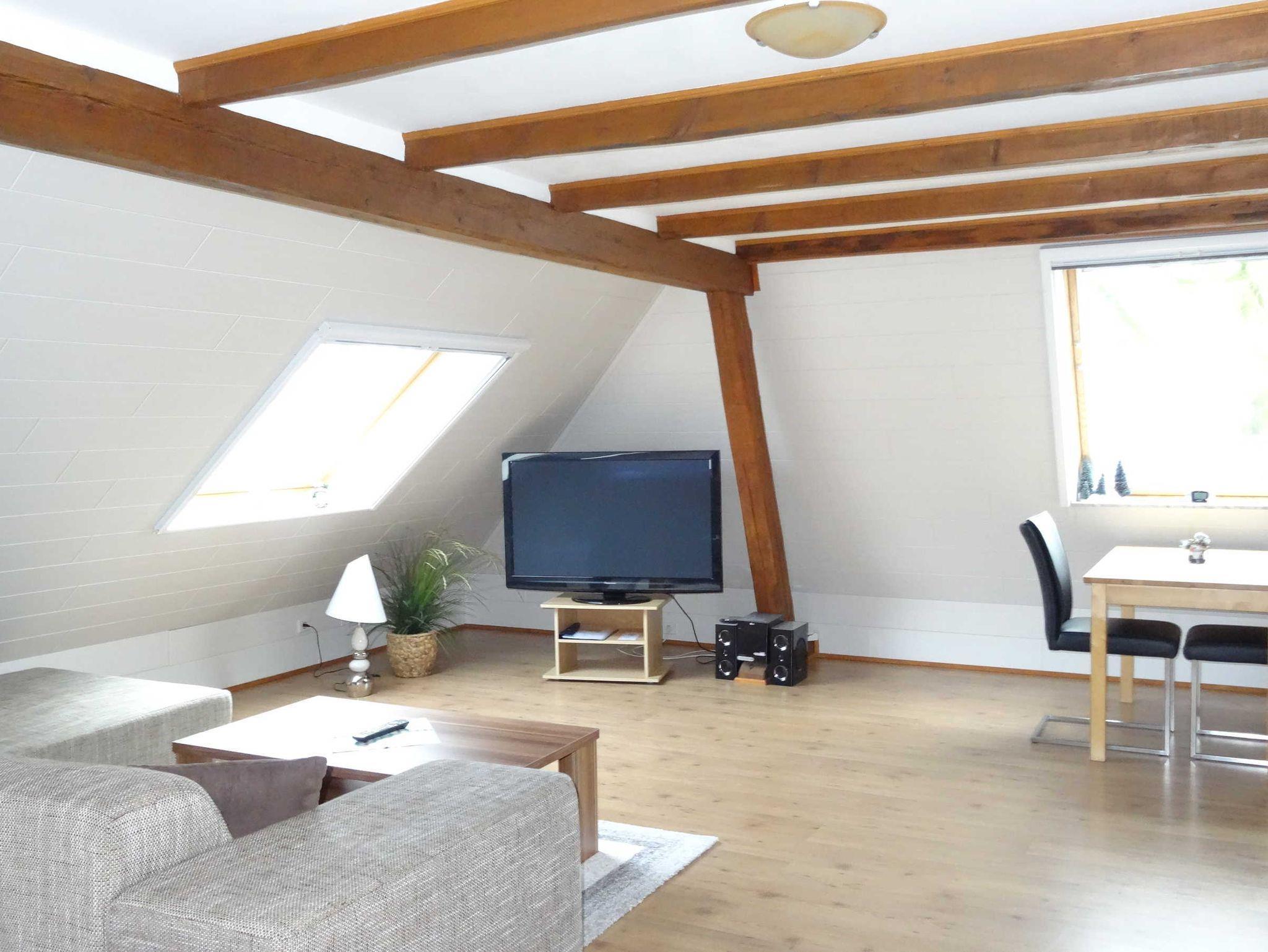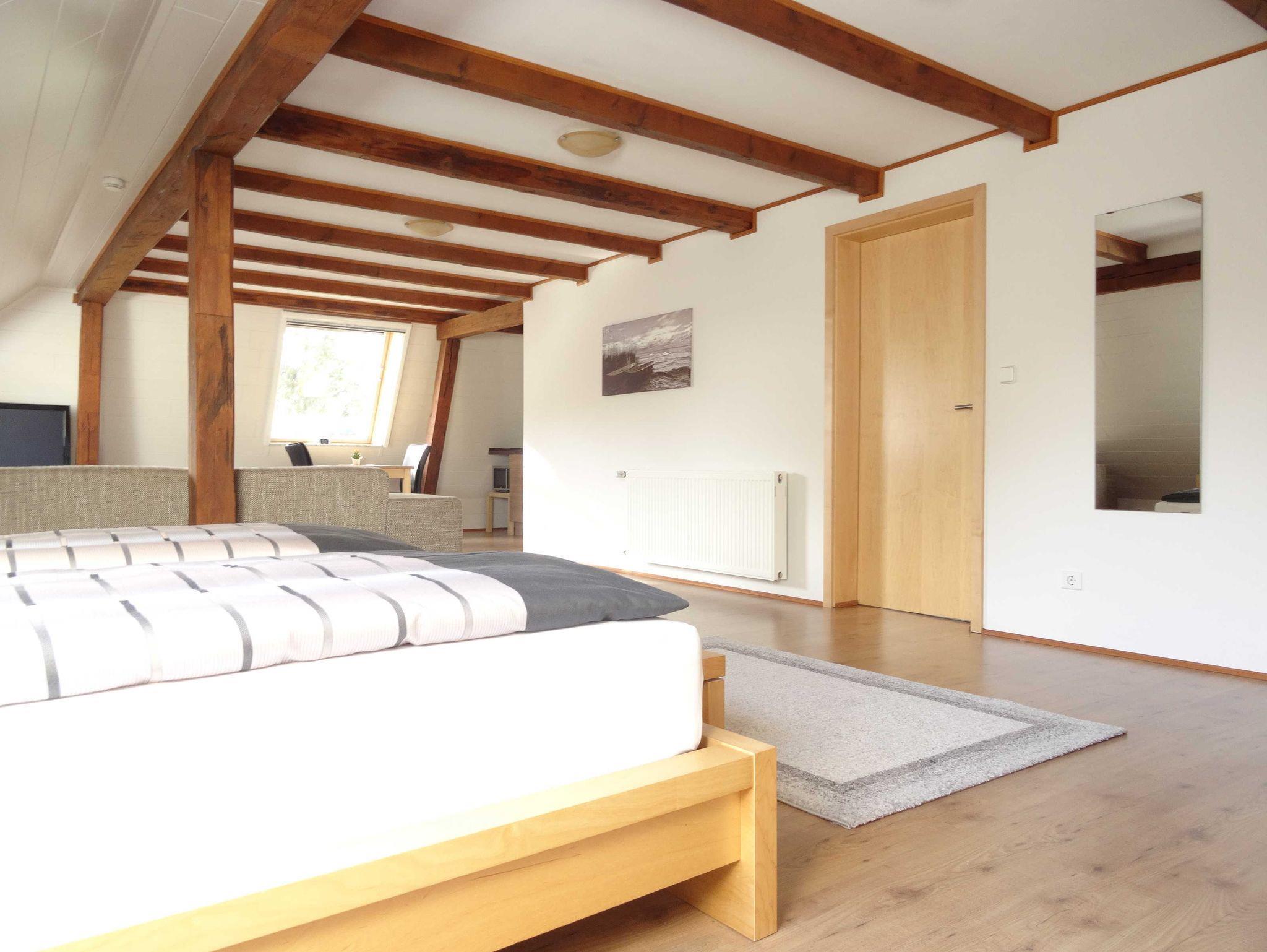 Sehr geerhrte Gäste sie wohnen im 2.ten Stock, in dem ausgebauten Kornboden des historischen Mansard-Gebäude aus dem Jahr 1930. Der weite Blick über die Elbmarsch gibt Ihnen innere Ruhe.