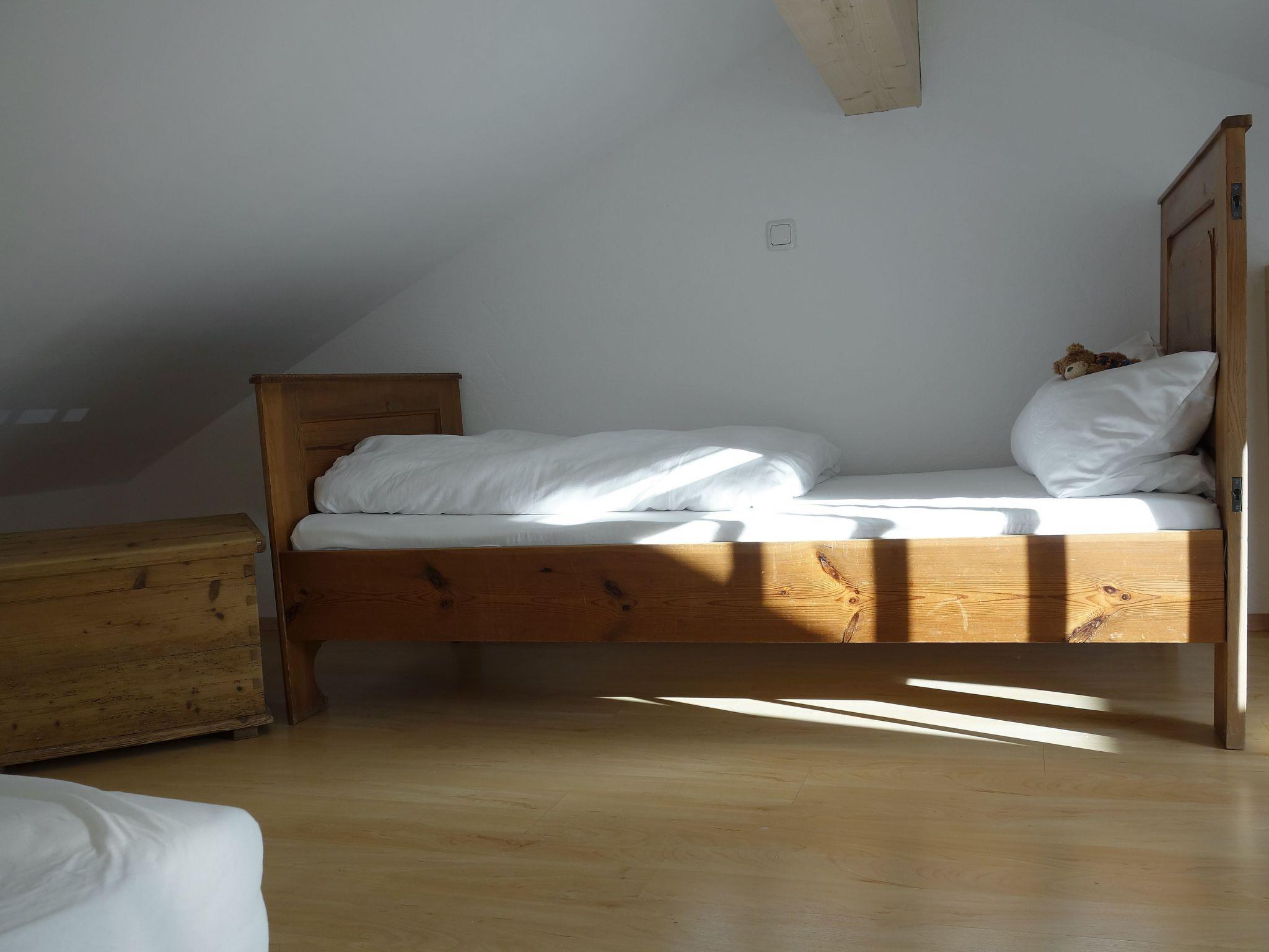 Im Inneren erwarten Sie nicht nur ein Schlafzimmer mit komfortablem Doppelbett und eine zusätzliche, ausziehbare Schlafcouch, sondern auch eine einladende Wohnküche. Die Küche punktet mit Vollausstattung und charaktervollen Altholzmöbeln, die eine gemütliche Atmosphäre schaffen. Für Familien mit Kindern oder zusätzliche Gäste sind ein Beistellbett sowie ein Babybett verfügbar. Die Galerie bietet einen besonderen Rückzugsort für Jugendliche und Kinder über 8 Jahre, um zu chillen oder zu schlafen.