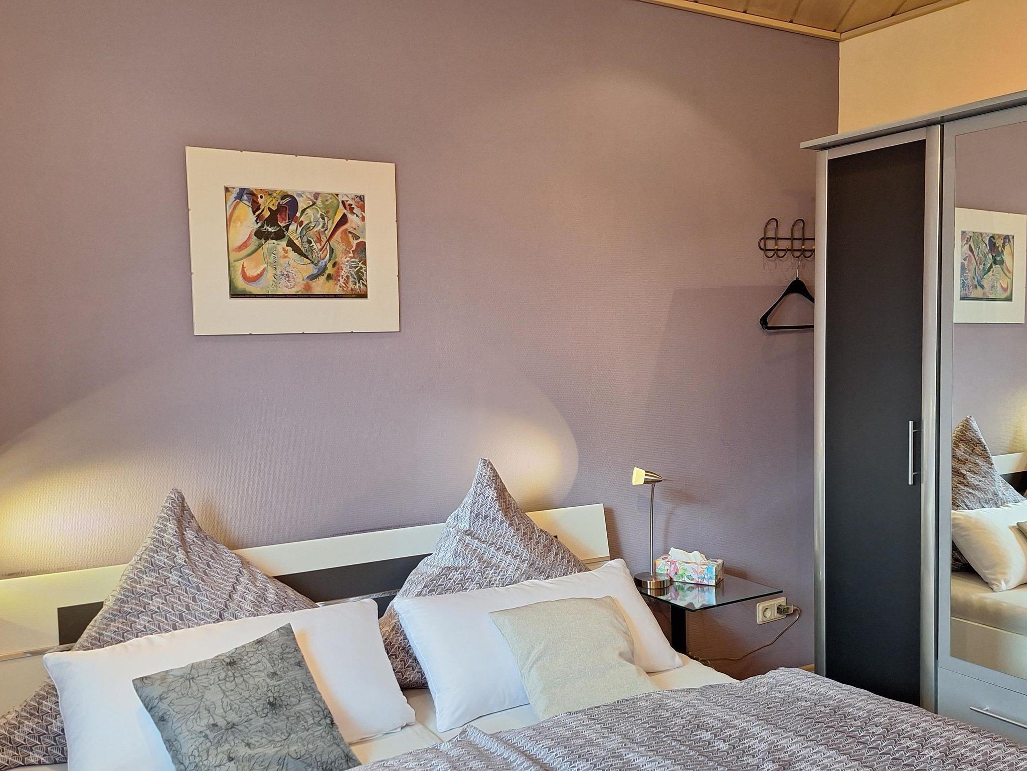 Unsere gemütliche Ferienwohnung ist 60 qm gross. Ein grosses Wohnzimmer mit intergrierter voll ausgestatteter Küche samt Esstheke und einem zusätzlichen Essplatz lädt zum Verweilen ein. Im Raumteiler gibt es ein Radio, Bücher und Spiele. TV und DVD Player sowie kostenloser Internetzugang stehen bereit. Das Schlafzimmer ist mit Doppelbett, Nachtkonsolen, kleiner Kommode und geräumigem Kleiderschrank und Bettwäsche ausgestattet, Platz für ein Reisebett ist auch noch. Das modern eingerichtete Badezimmer punktet mit Badewanne incl. Duschtrennwand, Waschtisch, Toilette und Hand- und Duschtüchern.