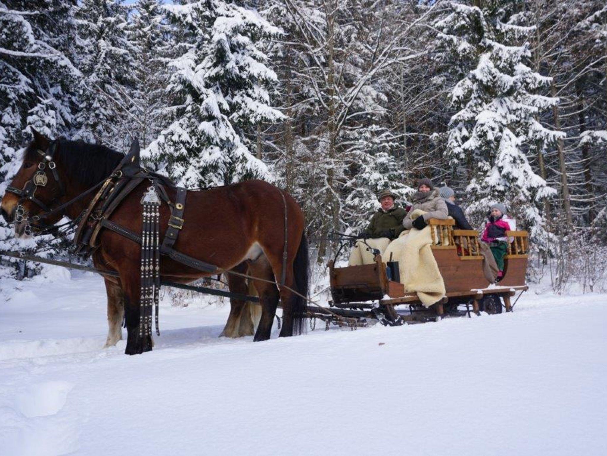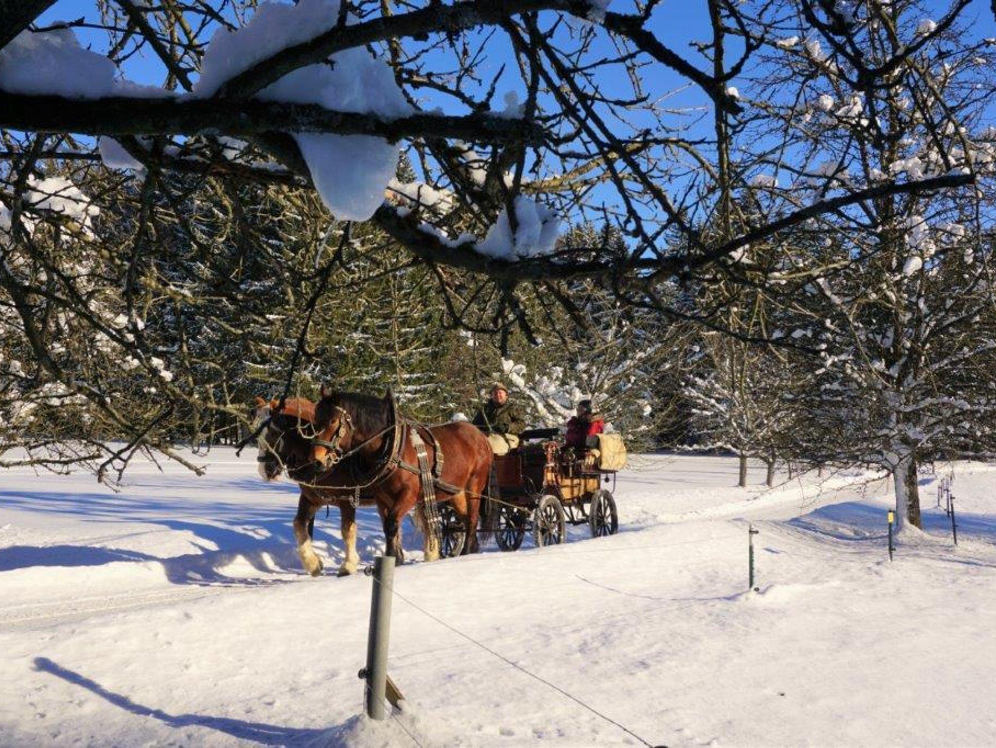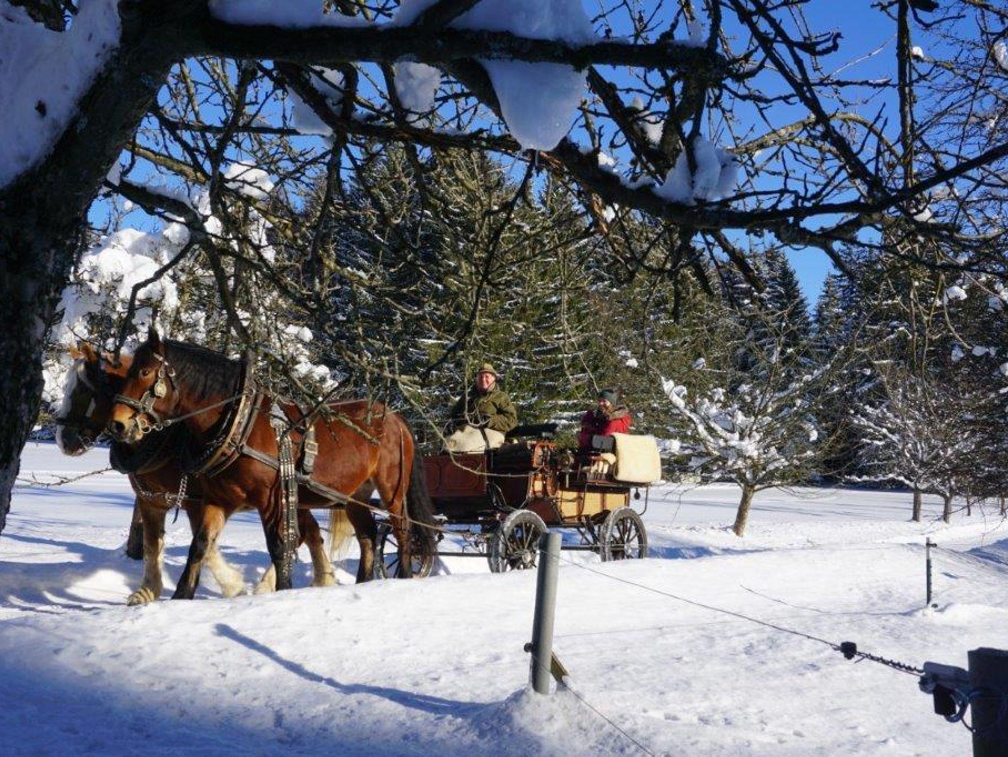 Im Winter machen wir mit Ihnen eine urige Schlittenfahrt mit Max und Moritz und alle sportlichen winterlichen Aktivitäten sind fast vor der Haustüre .