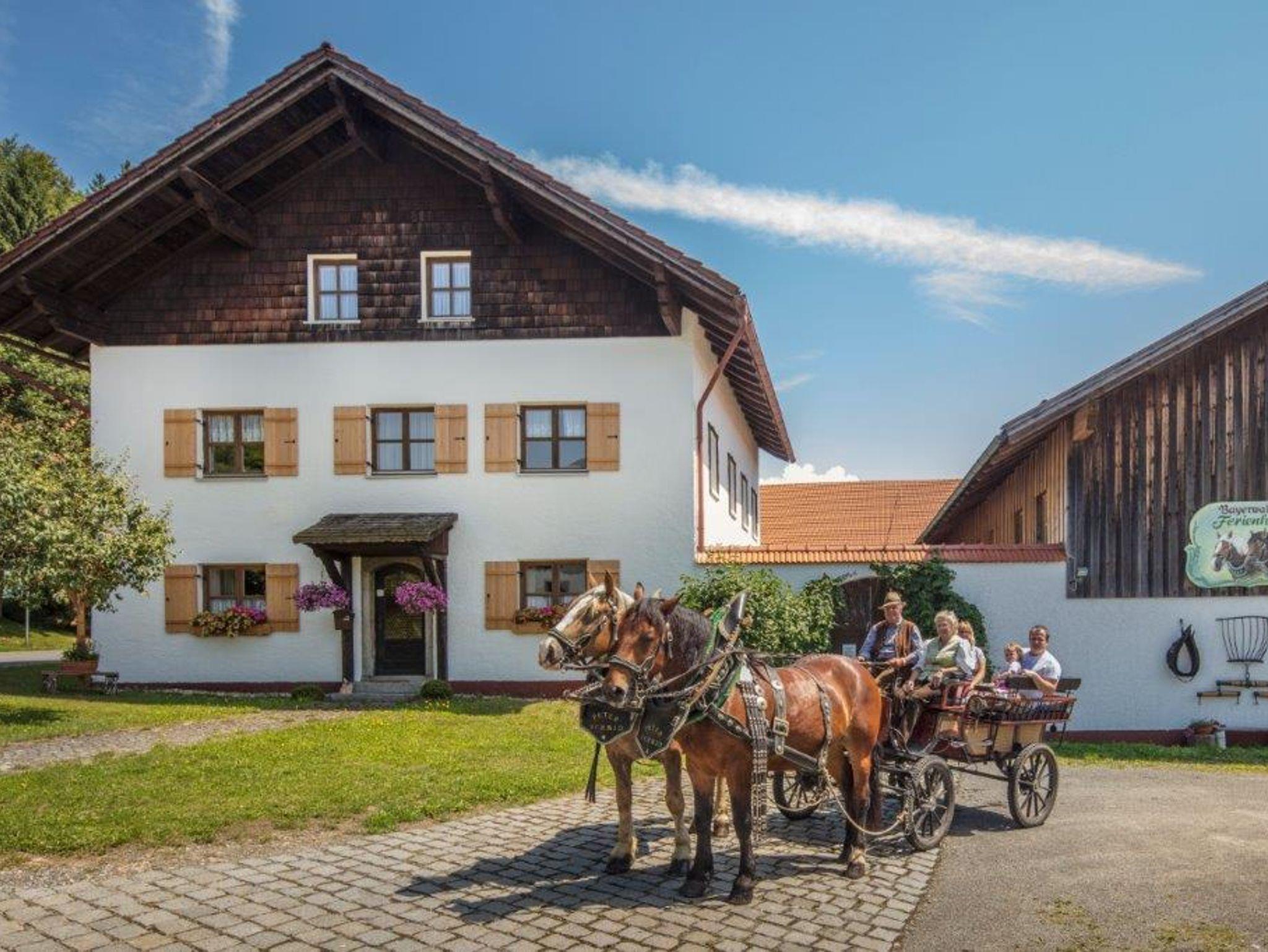 Unser Erlebnisbauernhof für jung und alt liegt auf 800 m Höhe , direkt am Nationalpark Bayerischer Wald. Zwei Süddeutsche Kaltblutpferde für die Kutschfahrten, Pony Charly und Schneewittchen zum reiten, Hasen, Hühner, Enten, Gänse, Puten, Forellen, Meerschweinchen, Katze Mietzi und Hund Willi, sind all unsere lieben Tiere. Spielscheune, Hobbyraum mit Tischkicker, Tischtennis und Kegelbahn für Ihre Indoor - Altivitäten. Grillplatz und Pfeil.-und Bogenparcour an unserem Wald, Hofladen mit Bayerwald - Spezialitäten runden das Angebot ab.