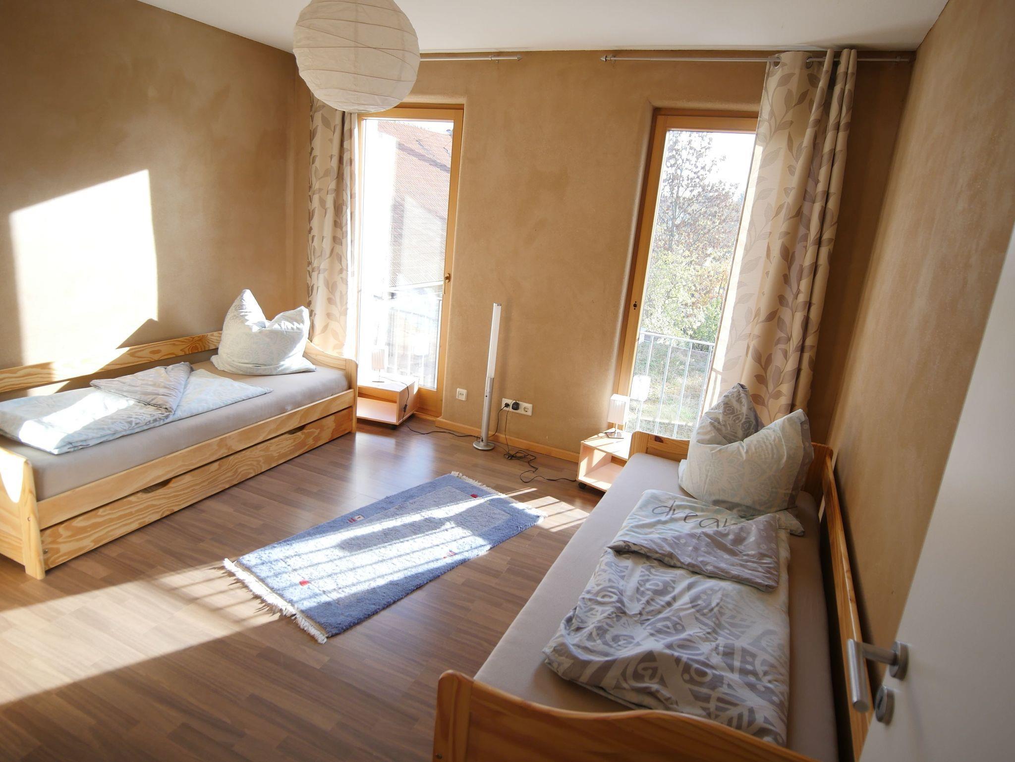 Schlafraum 2: 2 Einzelbetten für Erwachsene, die jeweils zusätzlich ausziehbar sind für die Übernachtung von Kindern bis 12 Jahren