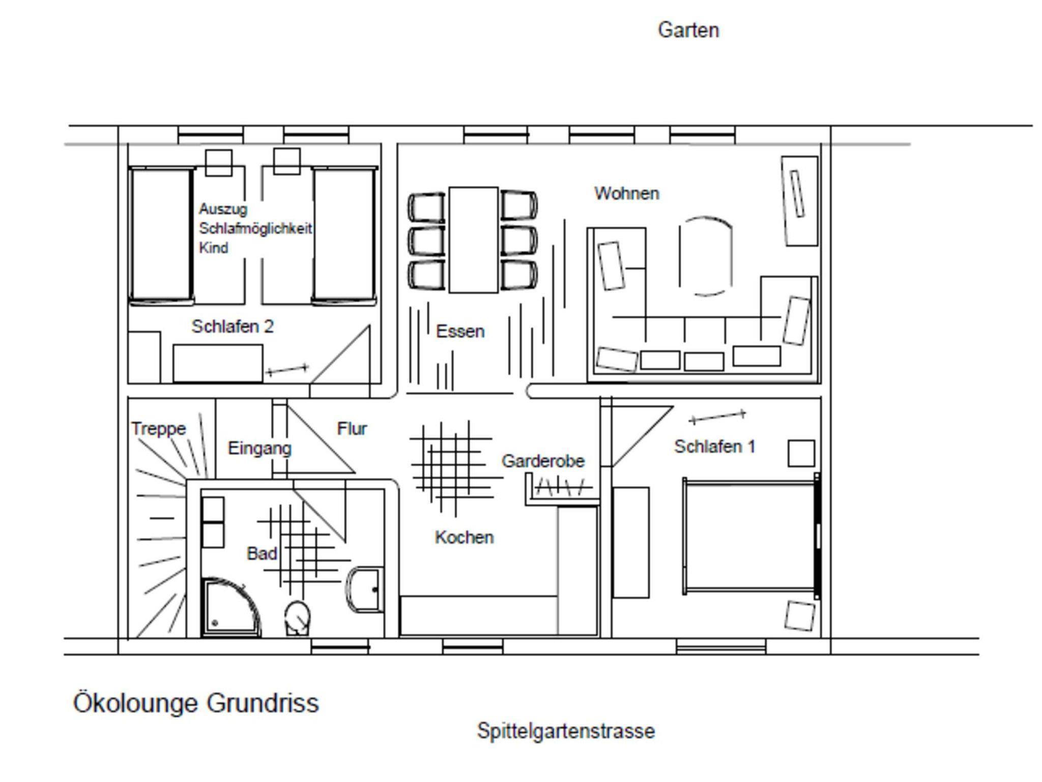 Die 70m² große sonnendurchflutete und kinderfreundliche Ferienwohnung Ökolounge liegt im 2.OG. Für das Wohlfühlklima sorgen baubiologisch empfohlene, sowie ökologische Baumaterialien. Hierfür werden Lehmputz in sämtlichen Räumen, geölte Eichendielen im Wohnbereich, Ökolaminat in den Schlafräumen und Wandheizung verwendet. Das Gebäude wurde mit der „Erfurter Grüne Hausnummer“ für nachhaltiges, energieeffizientes Bauen, ausgezeichnet.