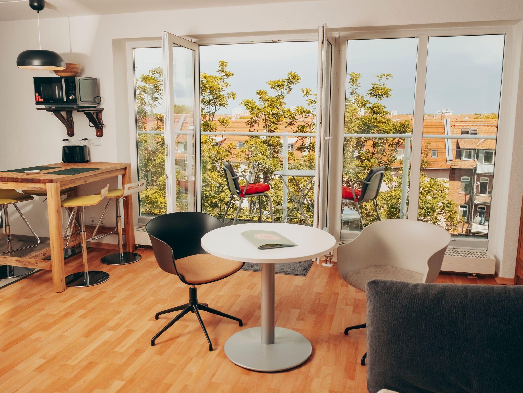 Entspannen sie sich in diesem ruhigen, stilvollen Apartment im Penthouse-Stil und genießen Sie vom schönen Aussichtsbalkon den Fernblick über die Stadt Erfurt, in unmittelbarer Parknähe.