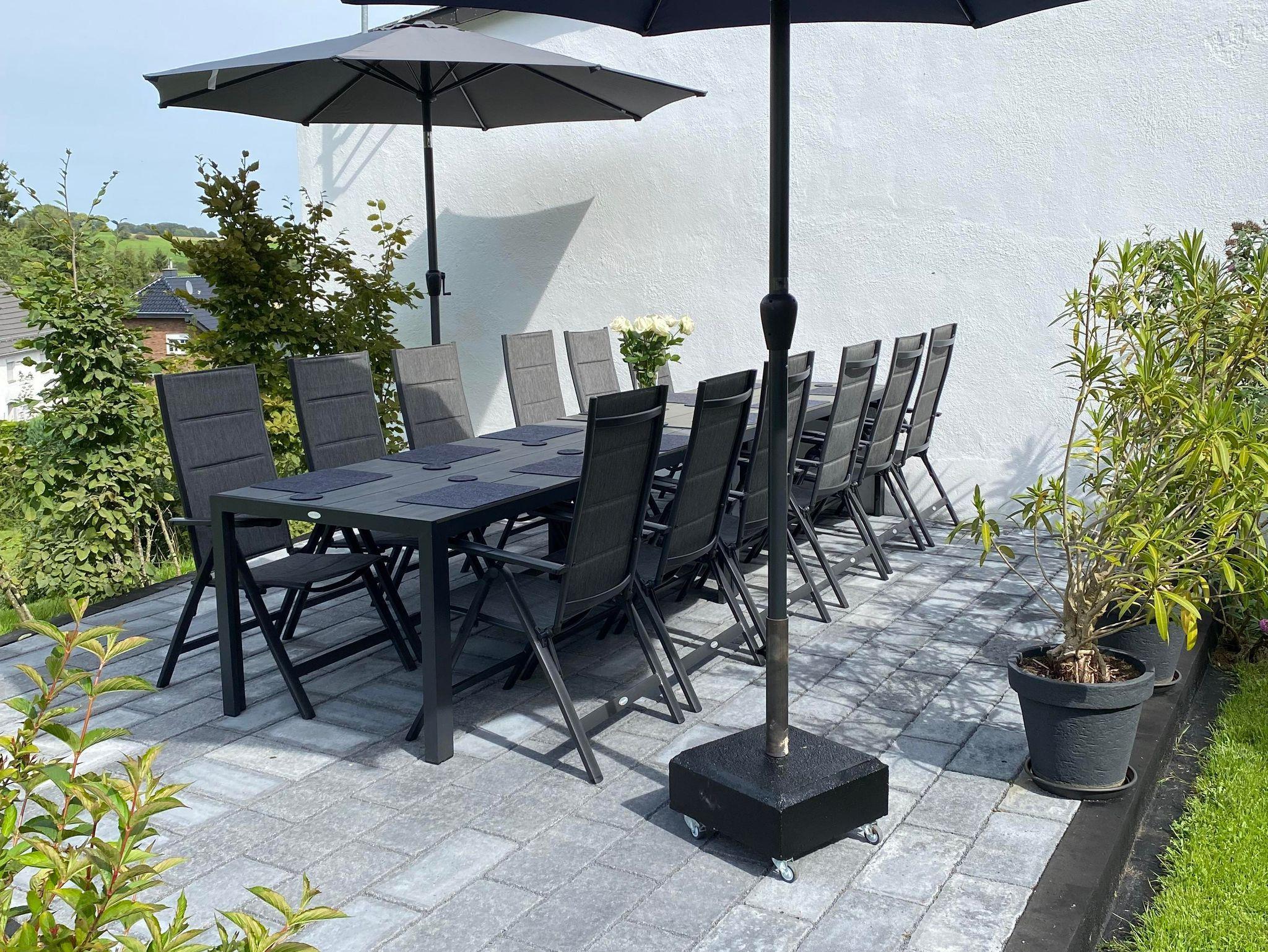 Hinter dem Haus befindet sich eine große Wiese und Gartenmöbel sind ausreichend vorhanden. Auch für die Unterbringung von Fahrrädern steht ein Raum zur Verfügung.