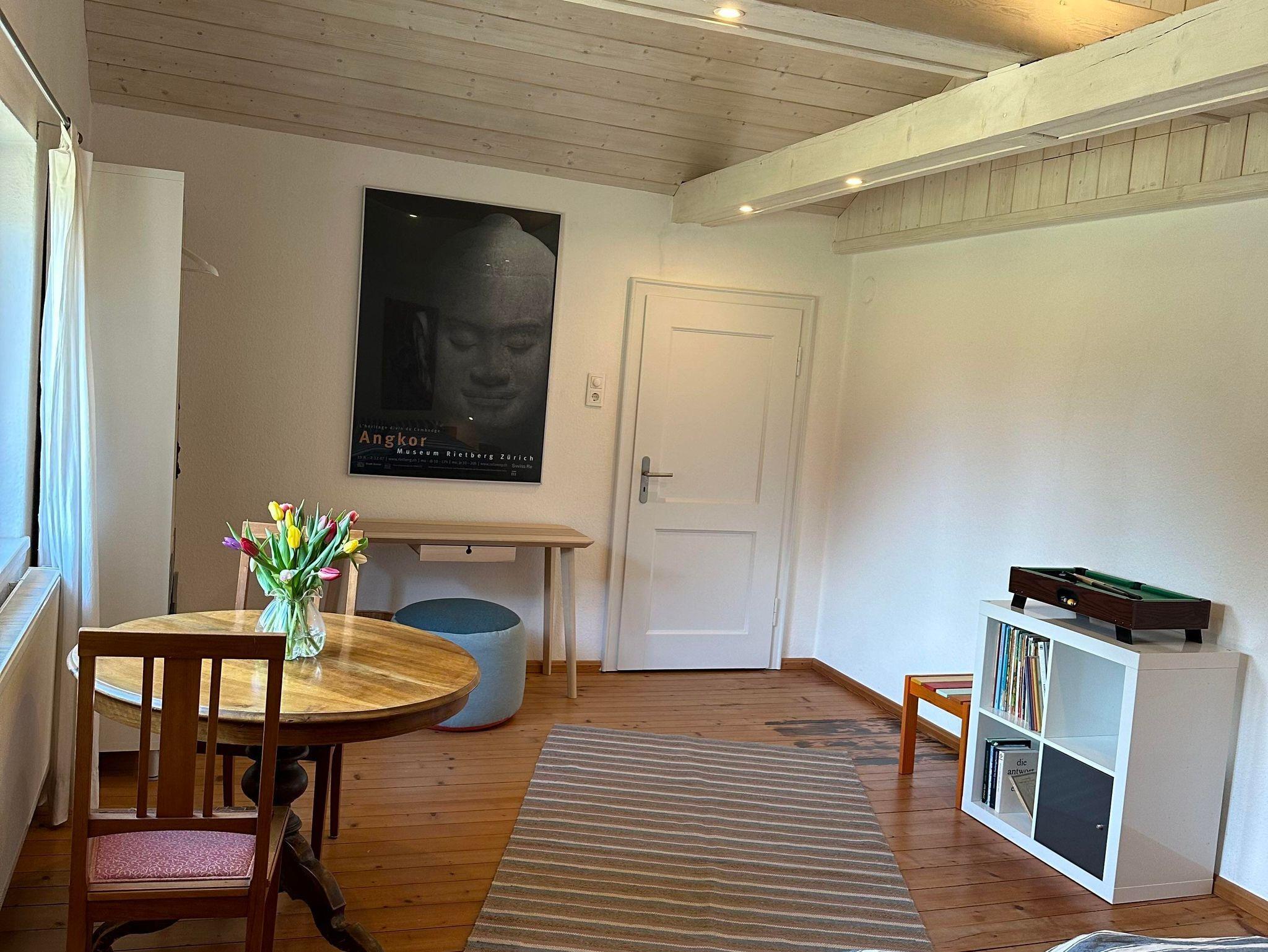Gemütliches Fereinhaus mitten im Grünen an ruhiger Lage, aber dennoch in kurzer Laufdistanz zu ÖPNV und Einkaufsmöglichkeit. Ca 800m2 Umschwung. 2 Parkplätze hintereinander sind auf dem Grundstück vorhanden. Das 1954 genaute Haus wurde 2019 renoviert mit einer modernen, vollausgestatteten Küche, einer grossen, schönen Holzterrasse mit Gartenmöbeln und komfprtablen Zimmern und einem Schwedenofen im Wohnzimmer. Das Grundstück liegt direkt an der Loipe des König-Ludwig-Laufs. Hunde sind erlaubt und werden mit 7€ pro Tag pro Hunbd in Rechnung gestellt. Bitte beachten Sie auch, dass die Benutzung des Whirlpools nicht im Angebot enthalten ist.