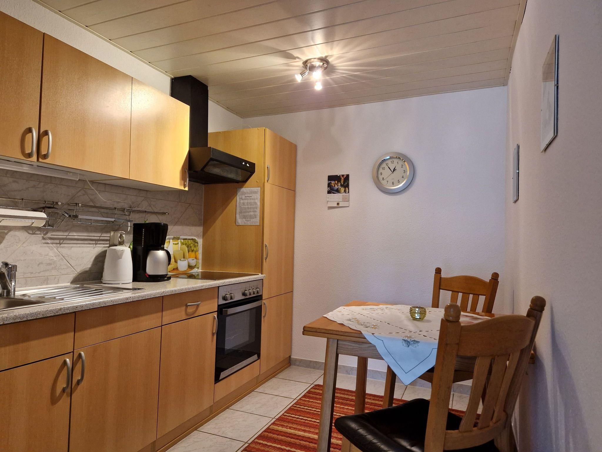 Komfortabel eingerichtete Ferienwohnung mit einem Schlafzimmer, einem Wohnzimmer sowie komplett ausgestatteter Küche.