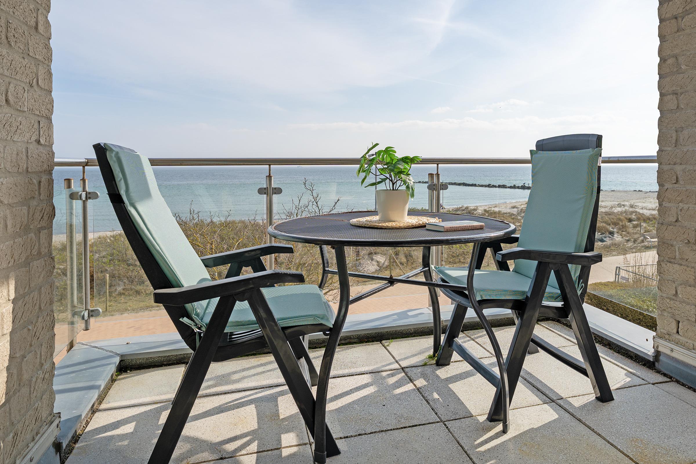 Strandnahe Ferienwohnung auf Fehmarn mit Balkon, Meerblick und moderner Ausstattung für erholsame Urlaubstage.
