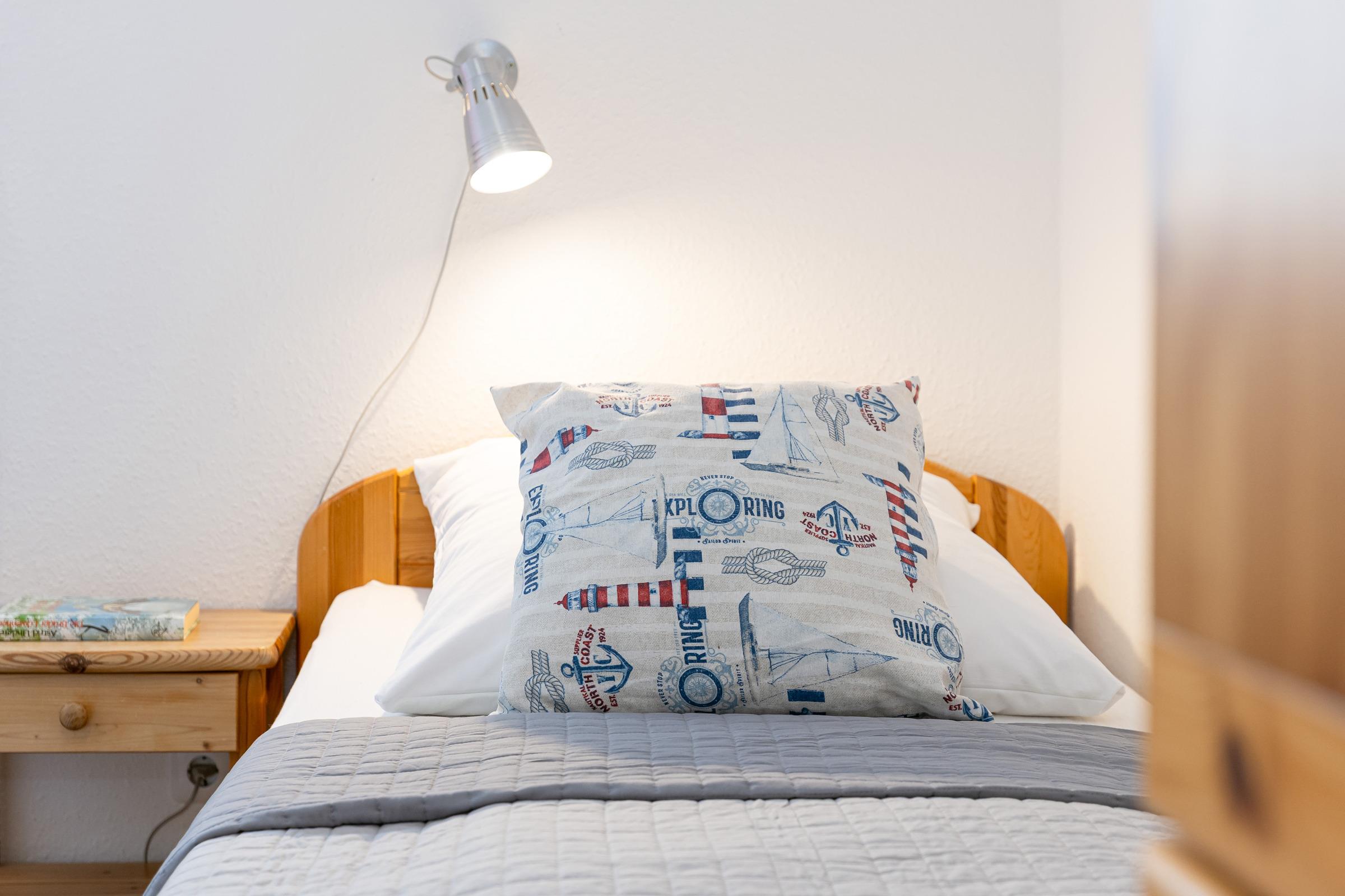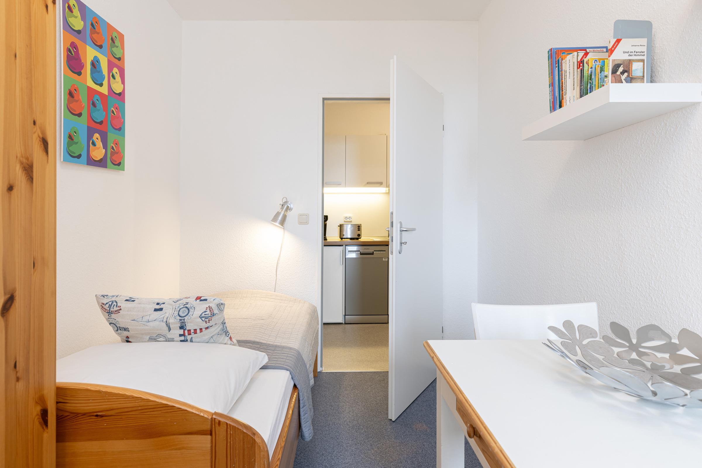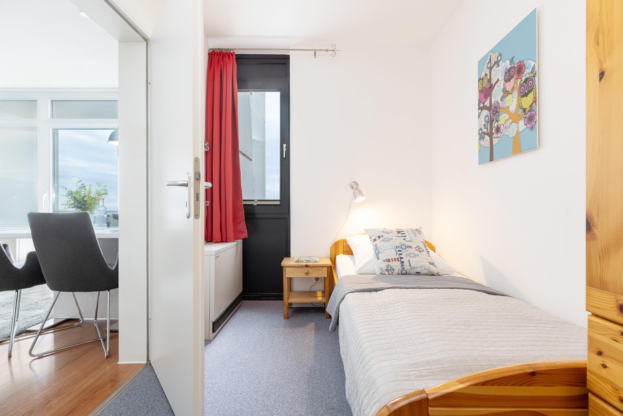 Schlafzimmer: 1 Einzelbett, Kleiderschrank, kein Platz für ein Babybett vorhanden