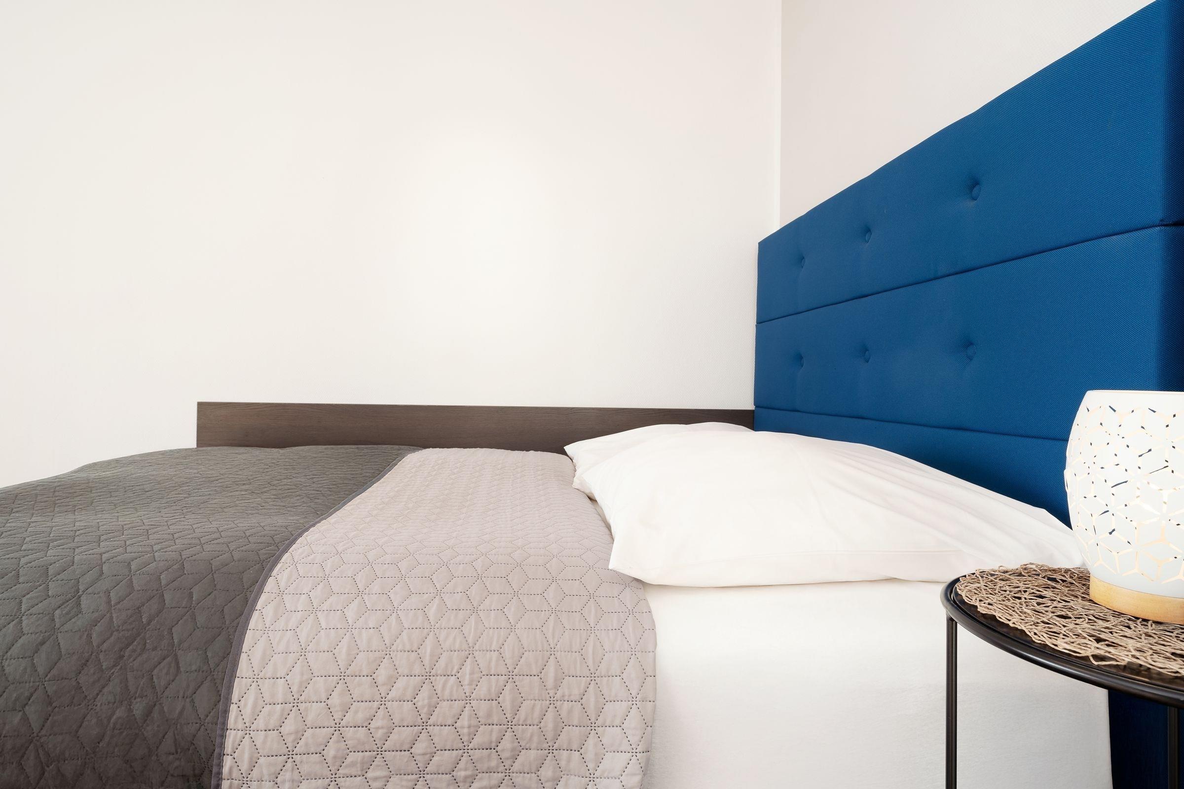 Wohnzimmer: 1 Doppelbett, 1 Schlafsofa, Verdunkelung: Plissee, Platz für ein Babybett vorhanden