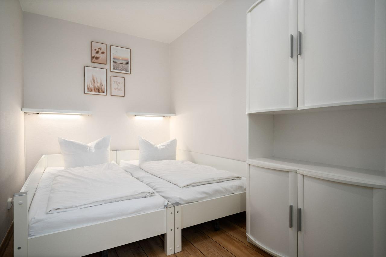 Die Wohnung Hafenkoje besticht durch einen großzügigen Esstisch direkt am Fenster, von dem aus Sie den Hafen und die Boote beobachten können. Die moderne und geschmackvolle Einrichtung sorgt für Gemütlichkeit und Wohlfühlatmosphäre. Die gut ausgestattete Küche lädt zum Kochen ein, während das moderne Badezimmer für Entspannung sorgt. Als Schlafgelegenheiten erwarten Sie ein Schrank-Doppelbett im Wohnbereich sowie zwei Einzelbetten im separaten Schlafzimmer. Genießen Sie den Blick auf den malerischen Hafen und die entspannte Atmosphäre, die diese Unterkunft zu bieten hat.