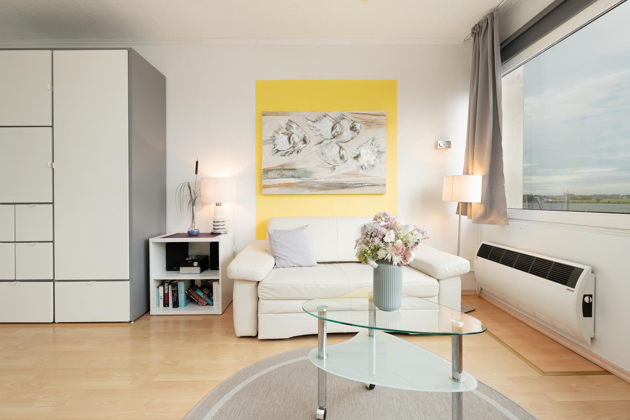 Moderne 1-Zimmer-Ferienwohnung mit Meerblick am Südstrand von Fehmarn, ideal für entspannte Tage am Strand.