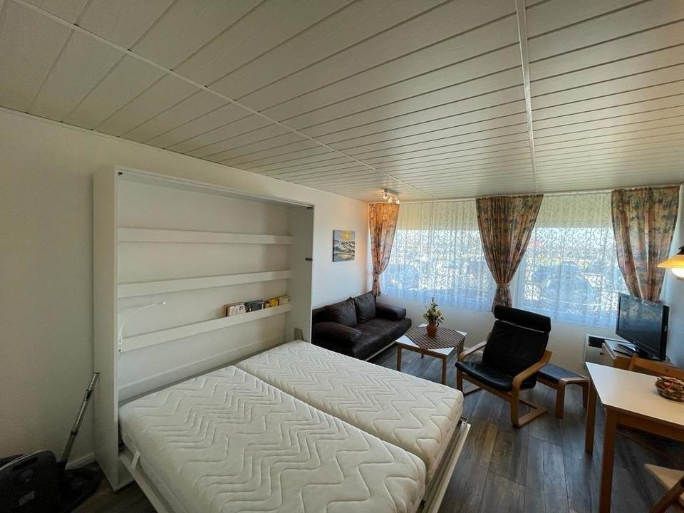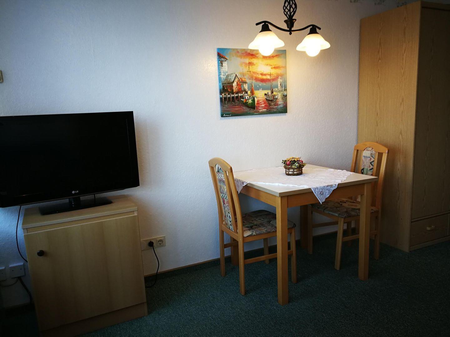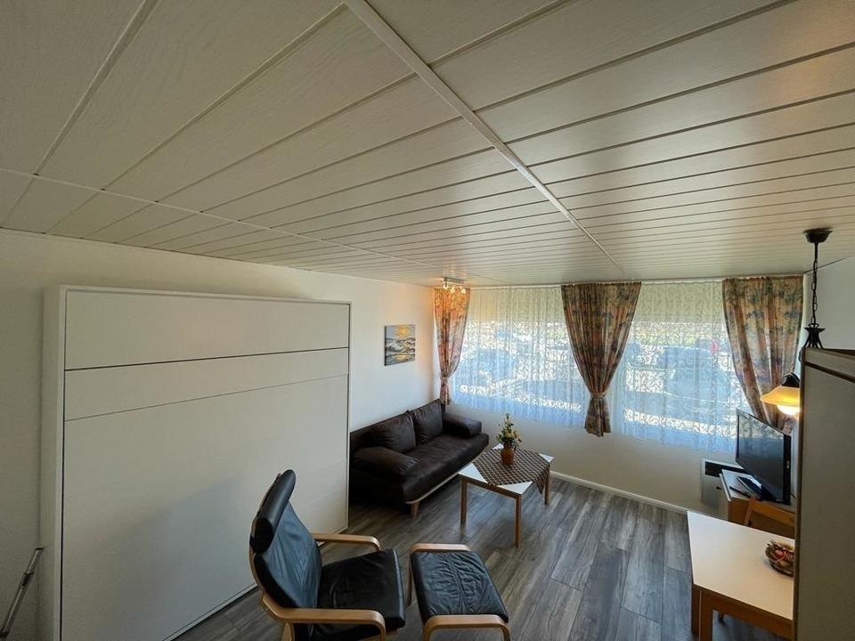 Im kombinierten Wohnzimmer finden Sie eine bequeme Couch , einen Esstisch sowie einen LED Fernseher (Sat TV) und einen Elektrokamin für kühle Abende sowie das bequeme Schrankbett.