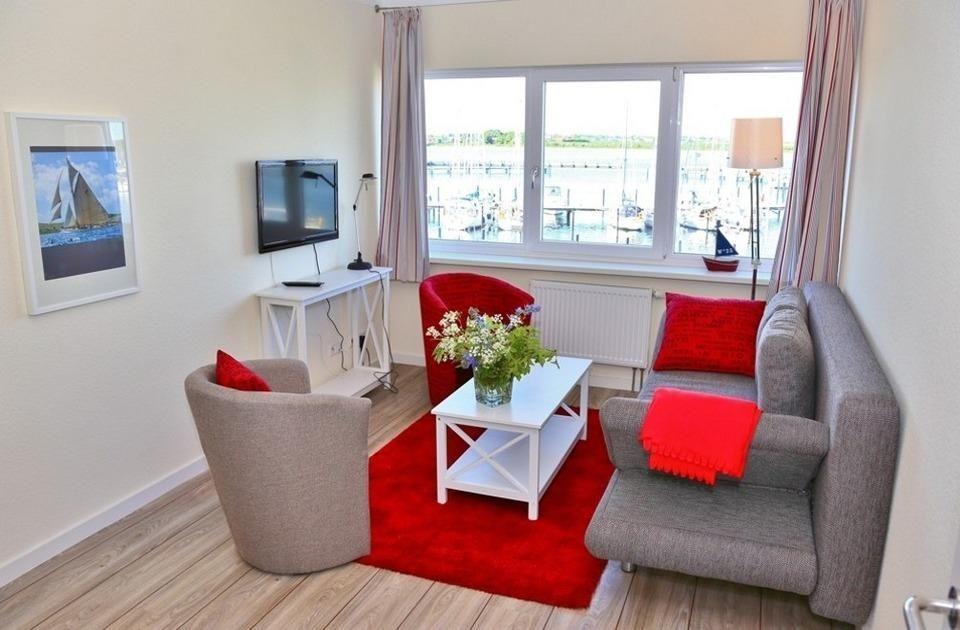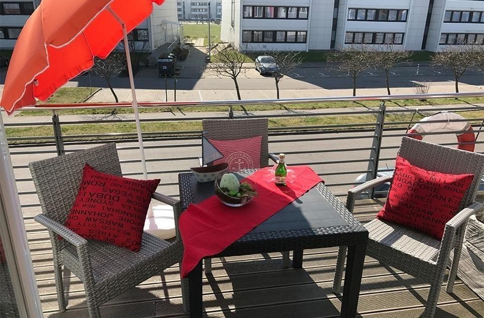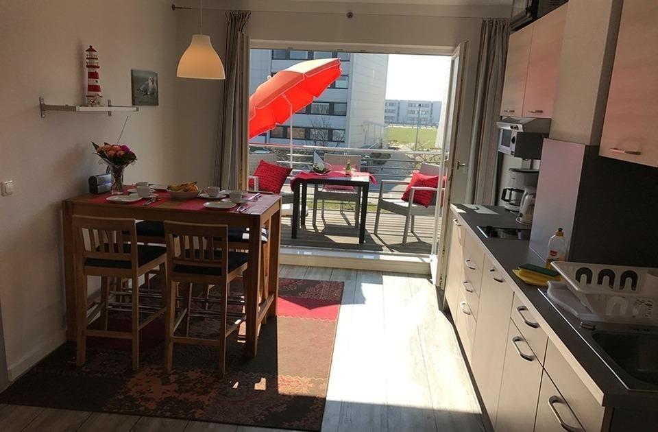 Charmantes Apartment am Yachthafen Fehmarn mit Balkon, Parkplatz und moderner Ausstattung für erholsame Ferien.