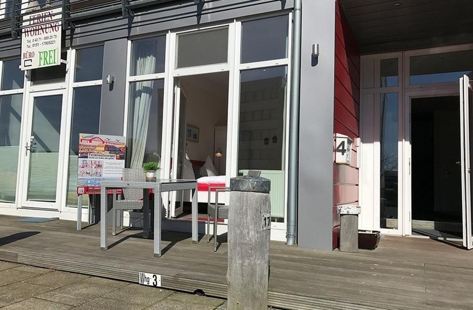 Die Wohnung 03 ist ideal für 2 - 3 Personen geeignet und befindet sich im Erdgeschoss mit direktem Zugang zum Hafen. Sie verfügt über eine Süd- und Nordterrasse.