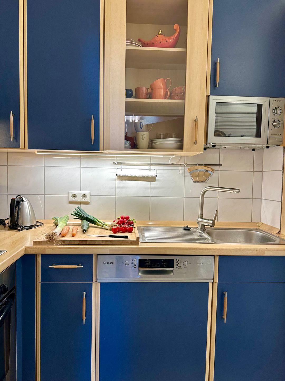 Das Appartement ist für 2 Personen ausgestattet. Der Wohnraum mit integriertem Essbereich, komfortabler Couch und Fernsehecke (mit Flachbild TV) ist mit einer großen Fensterfront versehen, durch die Sie auf die möblierte Terrasse gelangen. Die Küche ist vom Wohn- und Schlafbereich getrennt. Sie ist ausgestattet mit Backofen, Mikrowelle, Kühlschrank mit Gefrierfach, Spülmaschine, Herd mit Cerankochfeld sowie allen erdenklichen Küchenutensilien.
