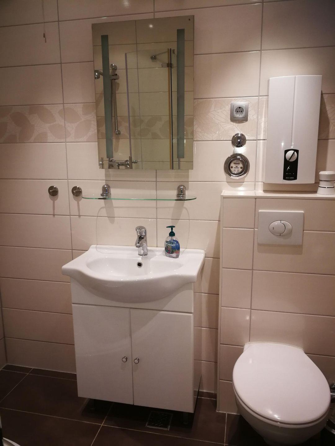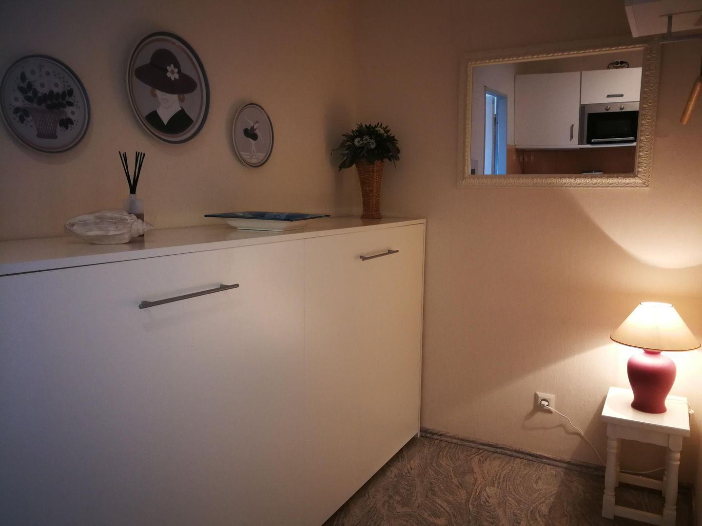 Hier passt alles zusammen, alles ist aufeinander abgestimmt, die Ausstattung ist hochwertig. Die Pantry ist vom Wohn- und Schlafbereich getrennt. Sie ist ausgestattet mit einer Mikrowelle, Kühlschrank mit Gefrierfach. Das hell geflieste Bad mit Dusche und WC runden die Ferienwohnung ab. Ihren PKW können Sie direkt vorm Haus parken.
