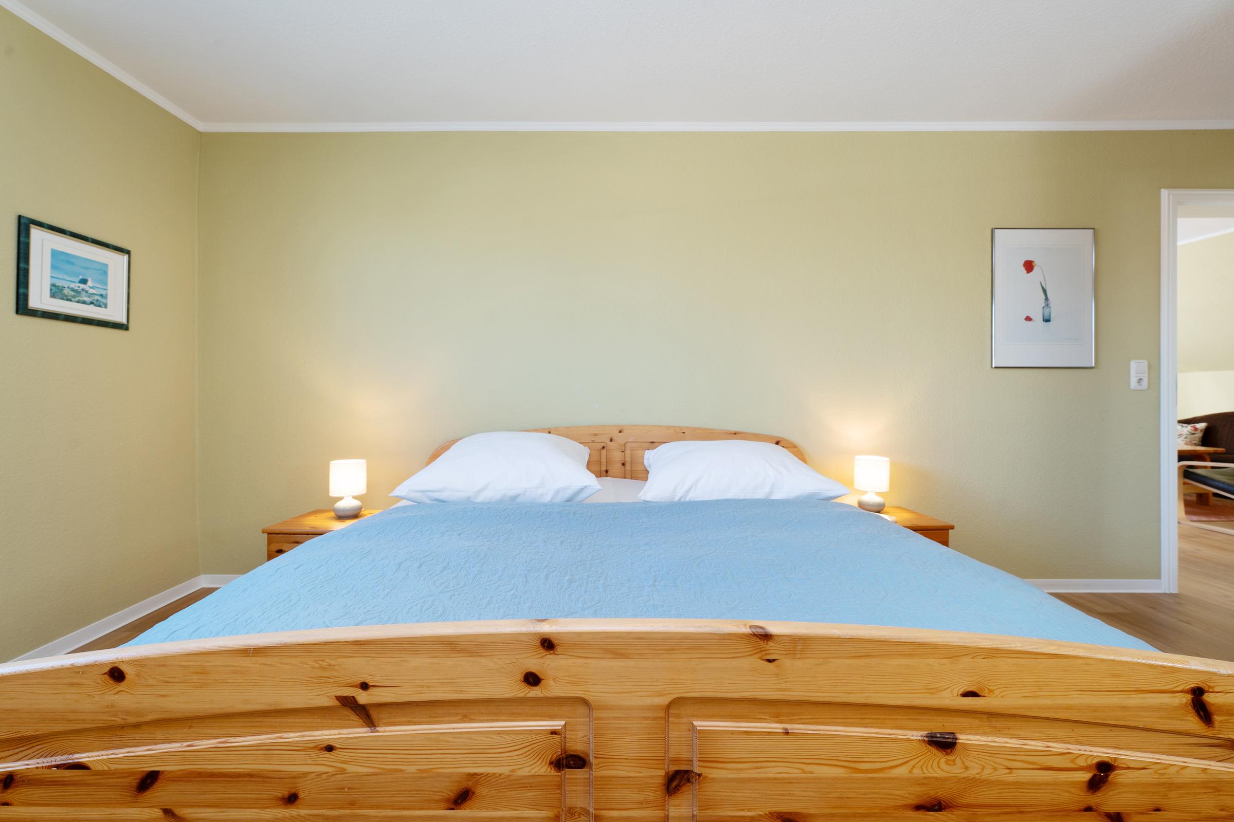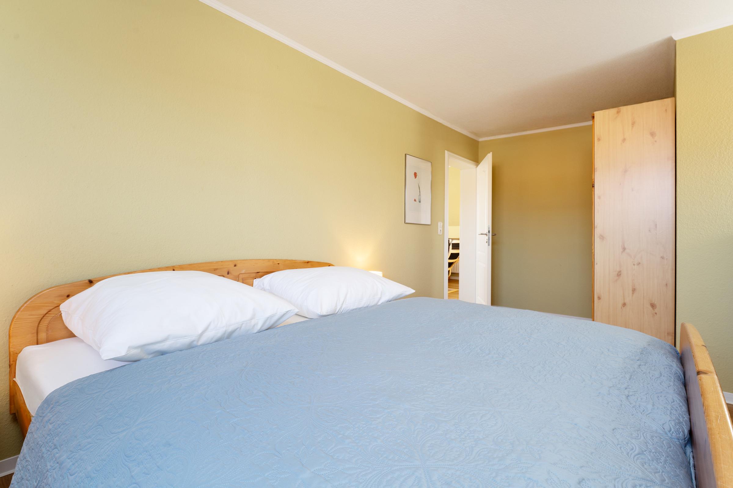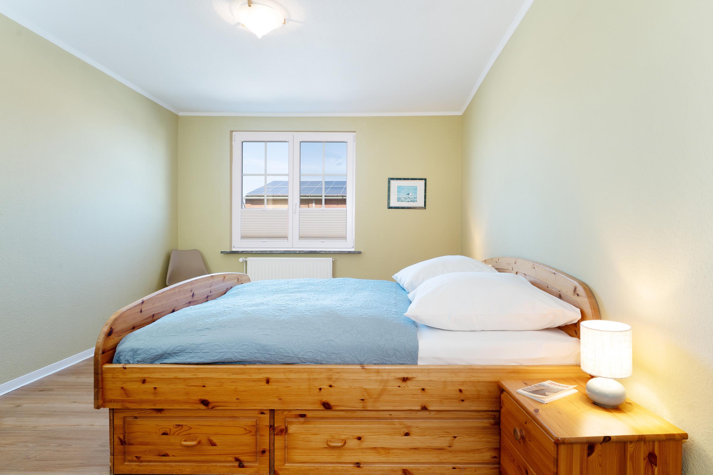 Schlafzimmer 1: 1 Doppelbett (2x 90 x 200 cm), Kleiderschrank, Verdunkelung: Plissee, Platz für ein Babybett vorhanden