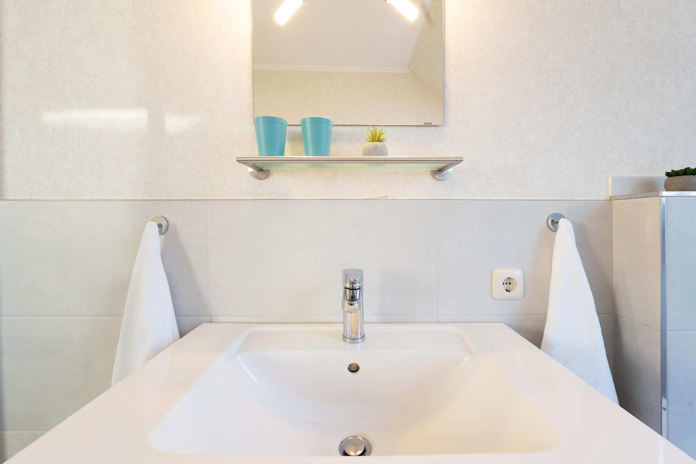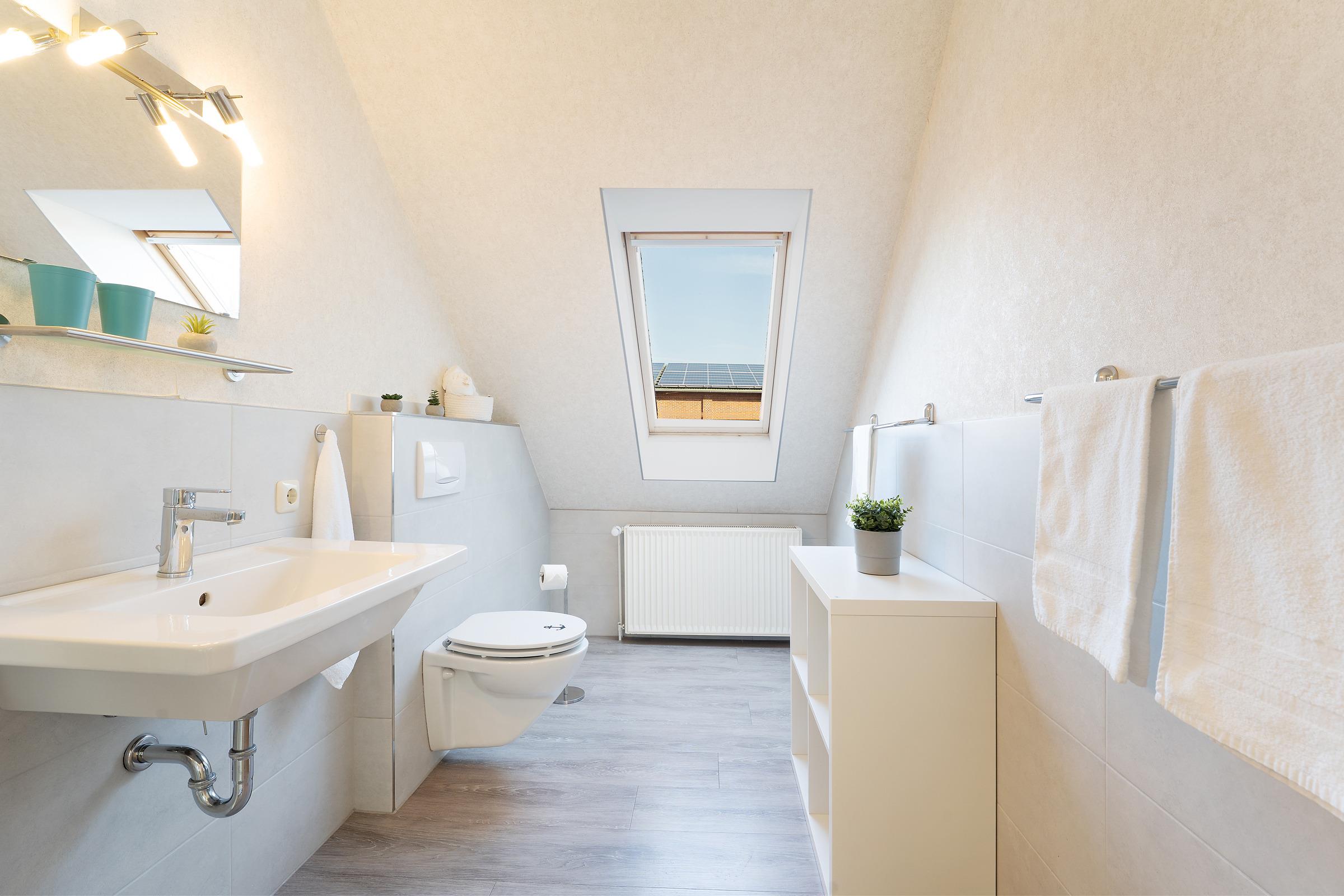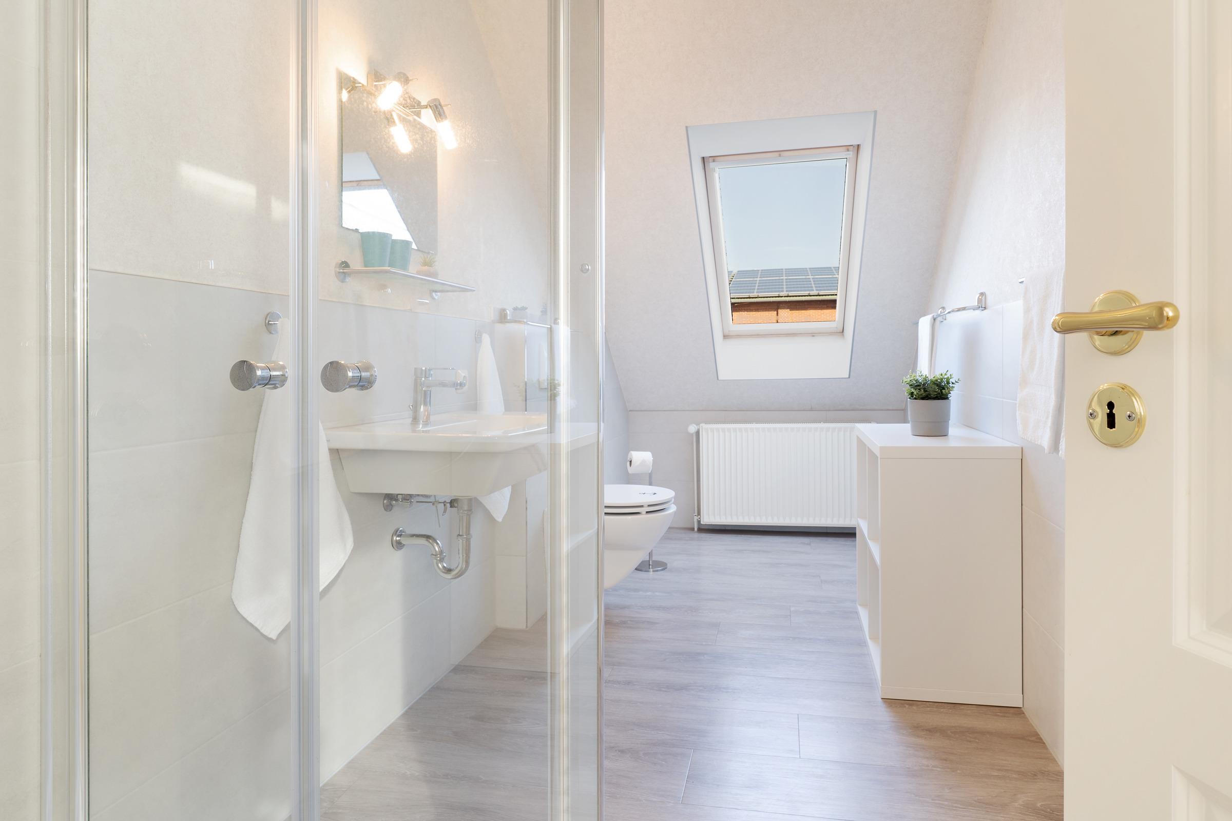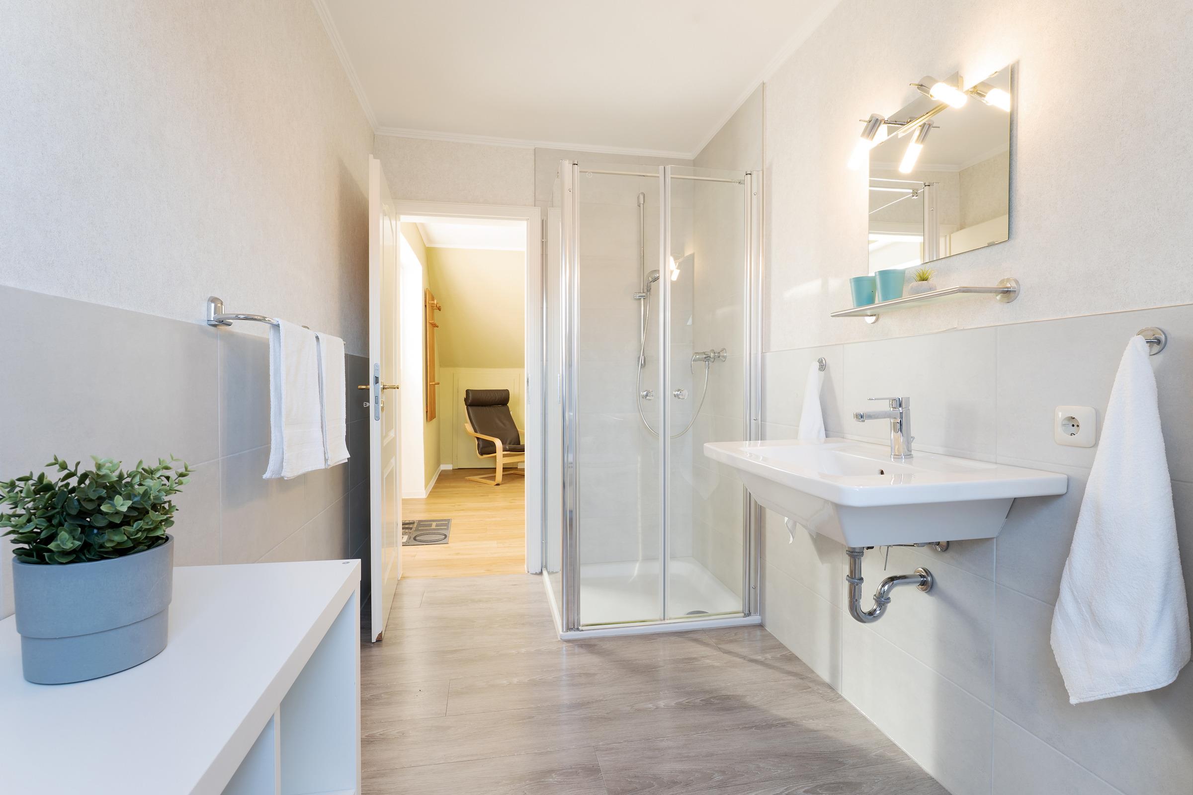 Der helle Wohnbereich lädt mit gemütlicher Sofaecke und TV zu entspannten Abenden ein und bildet den Mittelpunkt der Wohnung. Die Ferienwohnung befindet sich im 1. Stock und bietet Ihnen eine angenehme Rückzugsmöglichkeit. Ein Gemeinschaftsgarten steht Ihnen zur Mitnutzung zur Verfügung und überzeugt mit verschiedenen Sitzmöglichkeiten, einem Gartenhäuschen sowie viel Platz zum Entspannen und Spielen. Die offene Küche ist komfortabel ausgestattet mit Backofen, Geschirrspüler, Mikrowelle, Kaffeemaschine, Wasserkocher sowie Kühlschrank mit Gefrierfach und lässt keine Wünsche offen. Der angrenzende Essbereich bietet ausreichend Platz für gemeinsame Mahlzeiten. Die beiden Schlafzimmer verfügen über ein komfortables Doppelbett sowie zwei Einzelbetten und sorgen für erholsame Nächte. Das Badezimmer ist modern gestaltet und mit Dusche und WC ausgestattet.