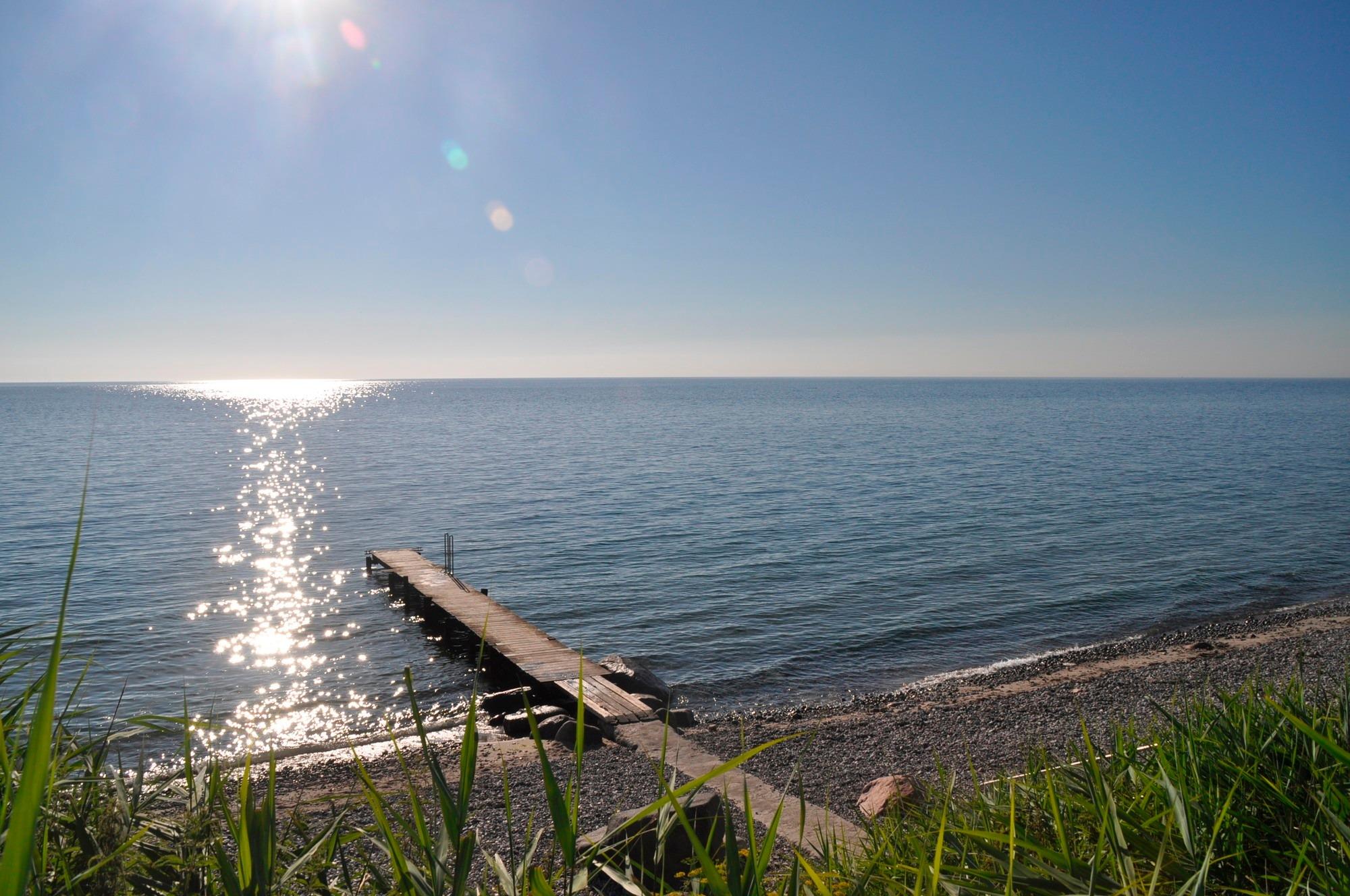 "Na?-neugierig geworden"? Am Strand gibt es einen Badesteg. Eine Treppe führt über die Steilküste hinunter an den Strand.