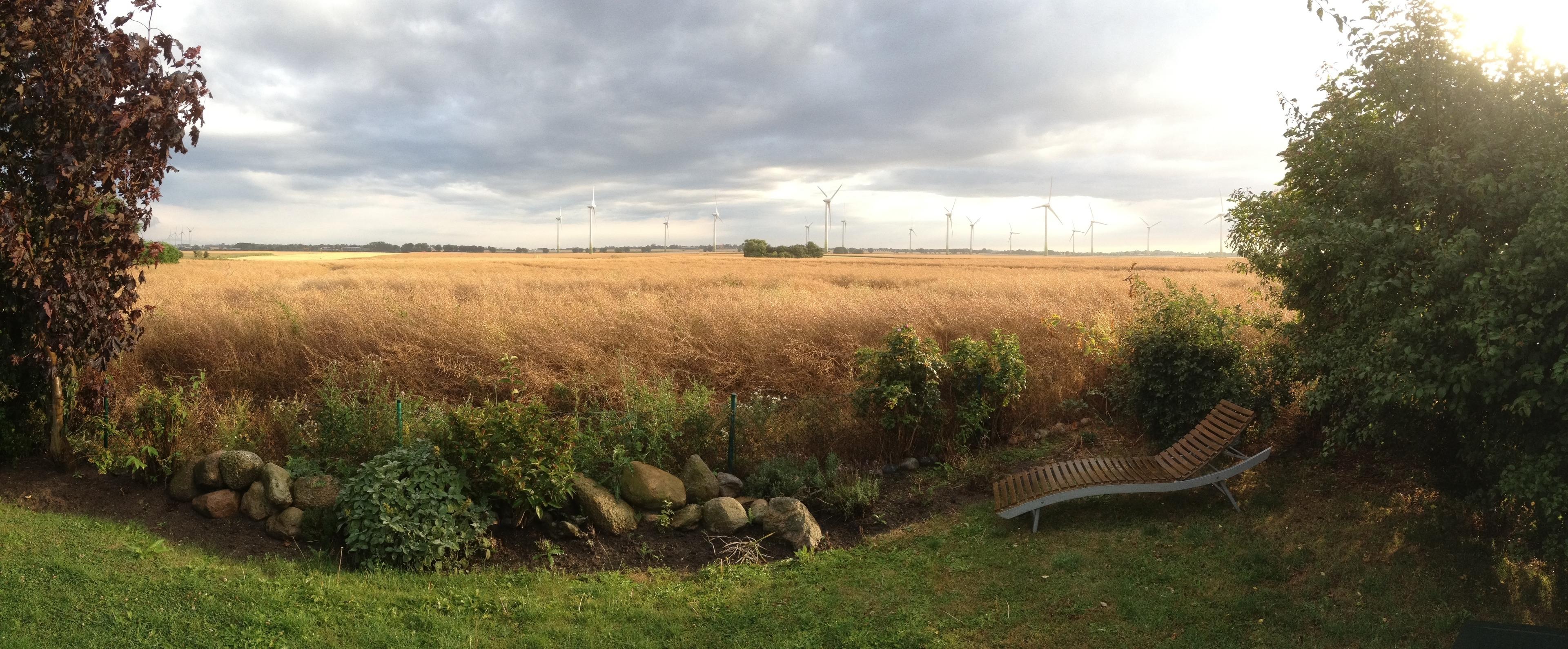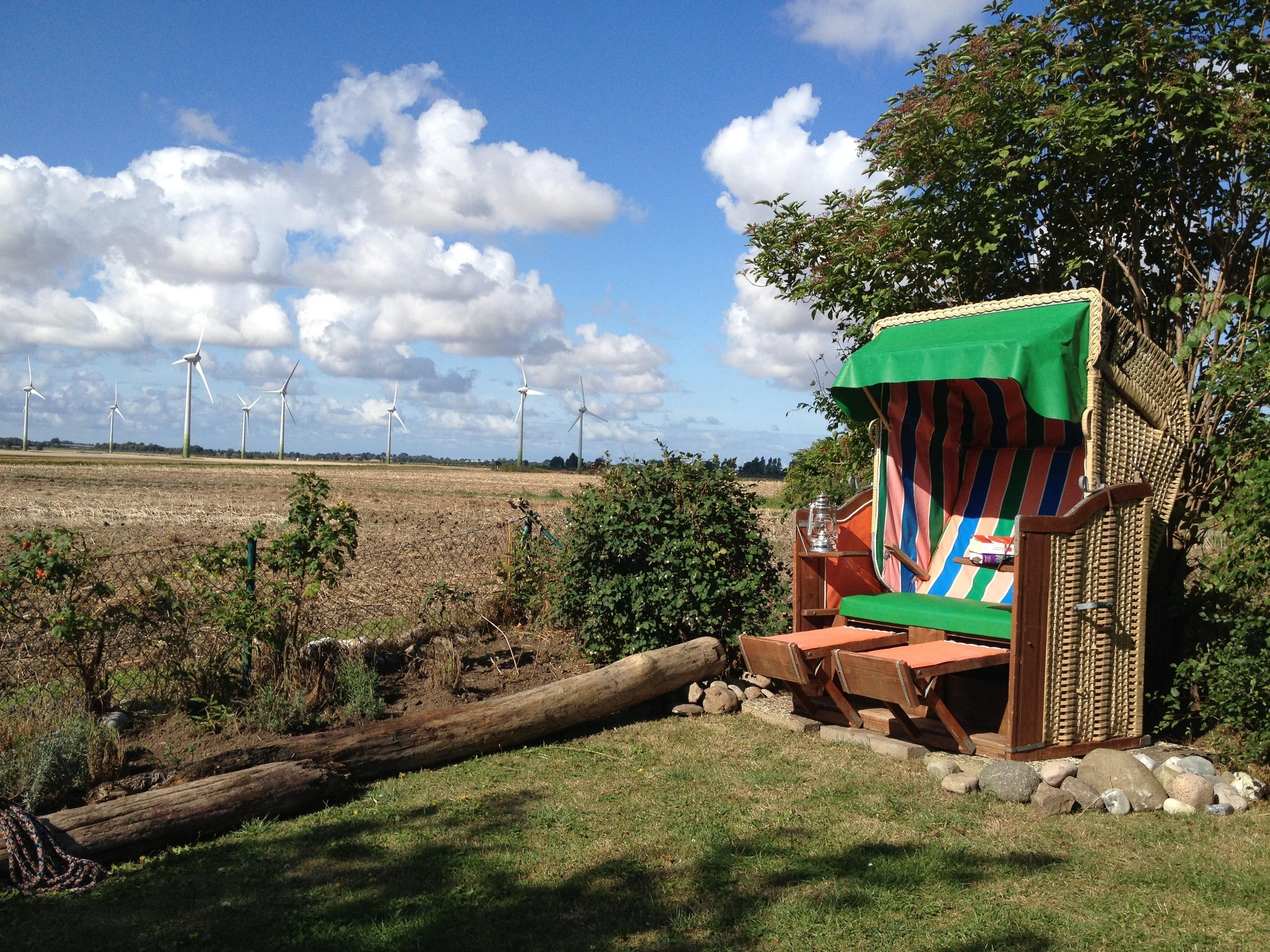 Es sind Terrassenmöbel und Liegen vor Ort. Der Terrassentisch ist groß genug für ein gemütliches Frühstück von 4 -6 Personen. Eine Bank und mehrere Stühle bieten Platz für alle Gäste. Von der Terrasse aus haben Sie einen herrlichen Blick über die Felder, quer über die ganze Insel. Und von unserem Strandkorb im Garten können Sie sogar ein wenig von der Ostsee sehen.