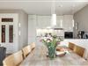 Die offene neue Küche ist in das geräumige Wohnzimmer integriert und wird durch den Essbereich abgerundet.