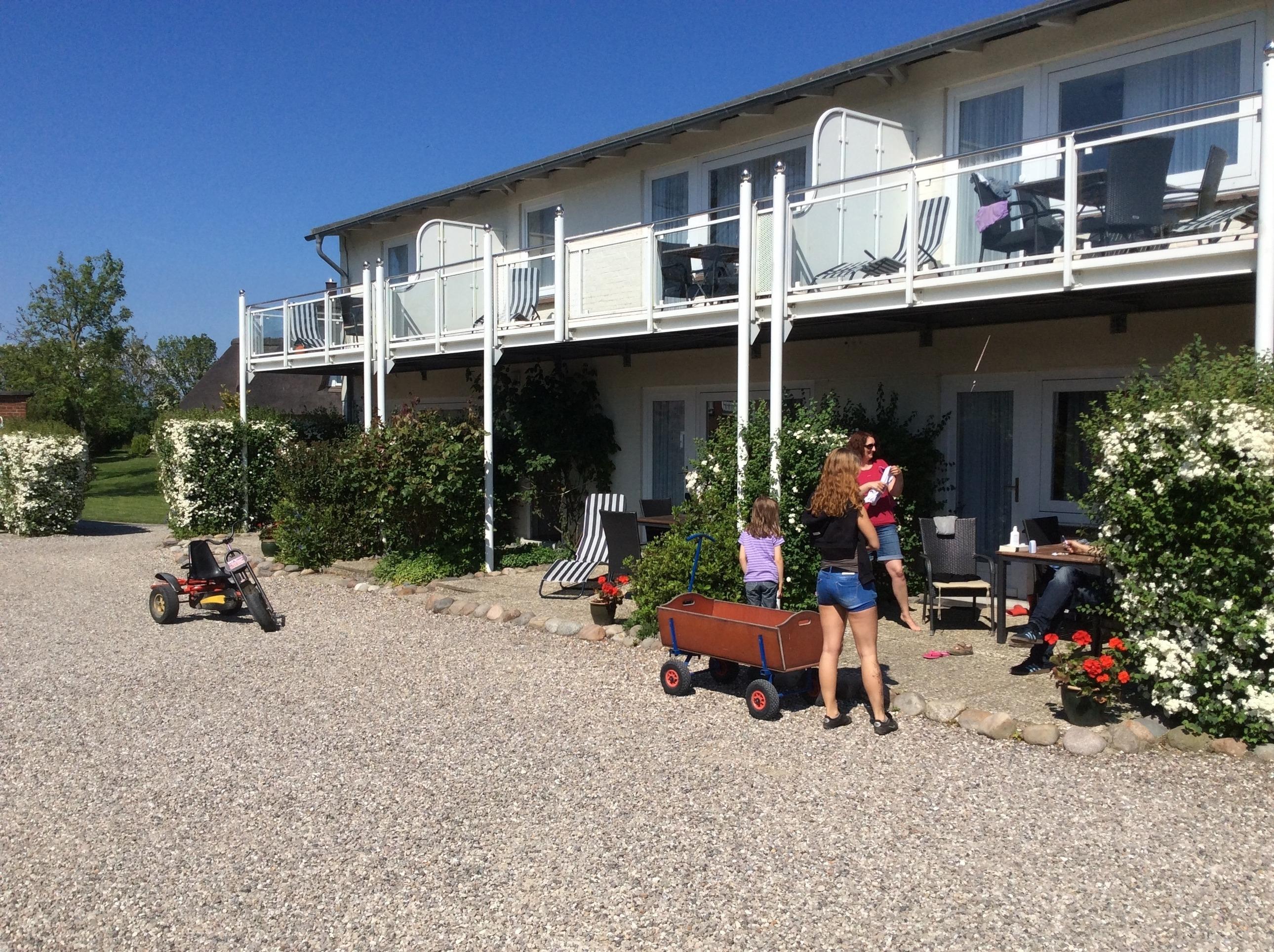 Zu Ihrer Haustür gelangen Sie über Ihre Hofterrasse. Sie betreten Ihre Wohnung in Ihr Wohnzimmer. Dieses ist zusätzlich mit einer offenen Einbauküche und einem schönen Essbereich ausgestattet. Das geräumige Duschbad und die Schlafräume befinden sich im hinteren Teil der Wohnung. Das Elternschlafzimmer verfügt über ein Doppelbett und das Kinderzimmer über zwei Einzelbetten. Von Ihrer Terrasse können Sie Ihren Kindern aus der ersten Reihe auf dem Spielplatz beim Spielen zusehen. Die Spielscheune ist nur ein paar Schritte entfernt.