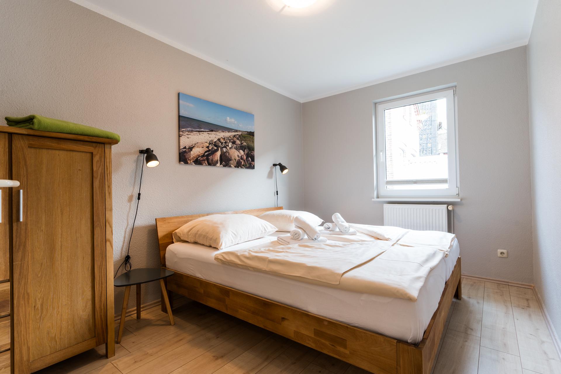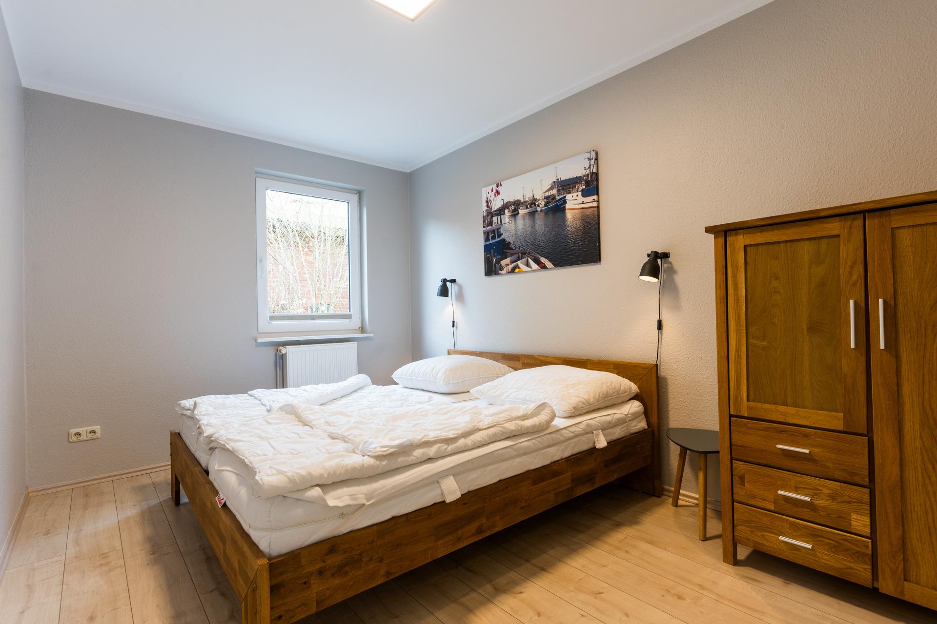 Zwei der Schlafzimmer sind mit je einem Doppelbett ausgestattet, das dritte Schlafzimmer mit zwei Einzelbetten.