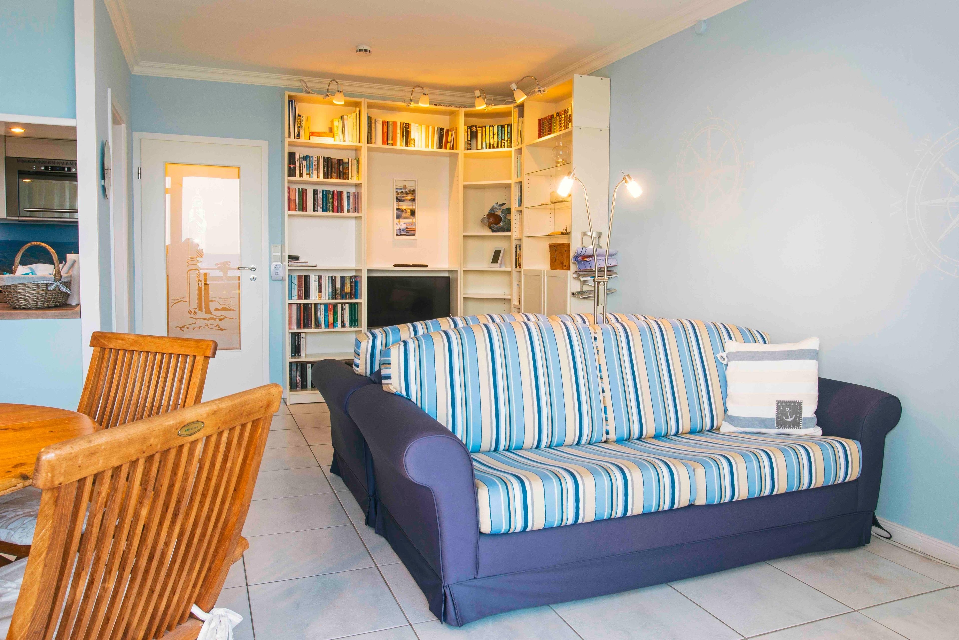 Die Ferienwohnung "Horizont" liegt in erster Reihe am Wasser und bietet sowohl von der geschützten Loggia aus als auch aus dem kompletten Wohnraum einen traumhaften Blick auf die Ostsee. Am vor dem Haus gelegenen Naturstrand befindet sich ein Badesteg. Die Ferienwohnung wurde liebevoll im maritimen Stil eingerichtet und bietet beste Erholungsmöglichkeiten für zwei Gäste.