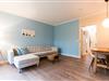 Im sonnigen Wohnzimmer mit Essecke erwartet Sie ein Flachbild-TV mit DVD Player, ein Radio mit CD Player sowie ein gemütliches Sofa zum Relaxen.