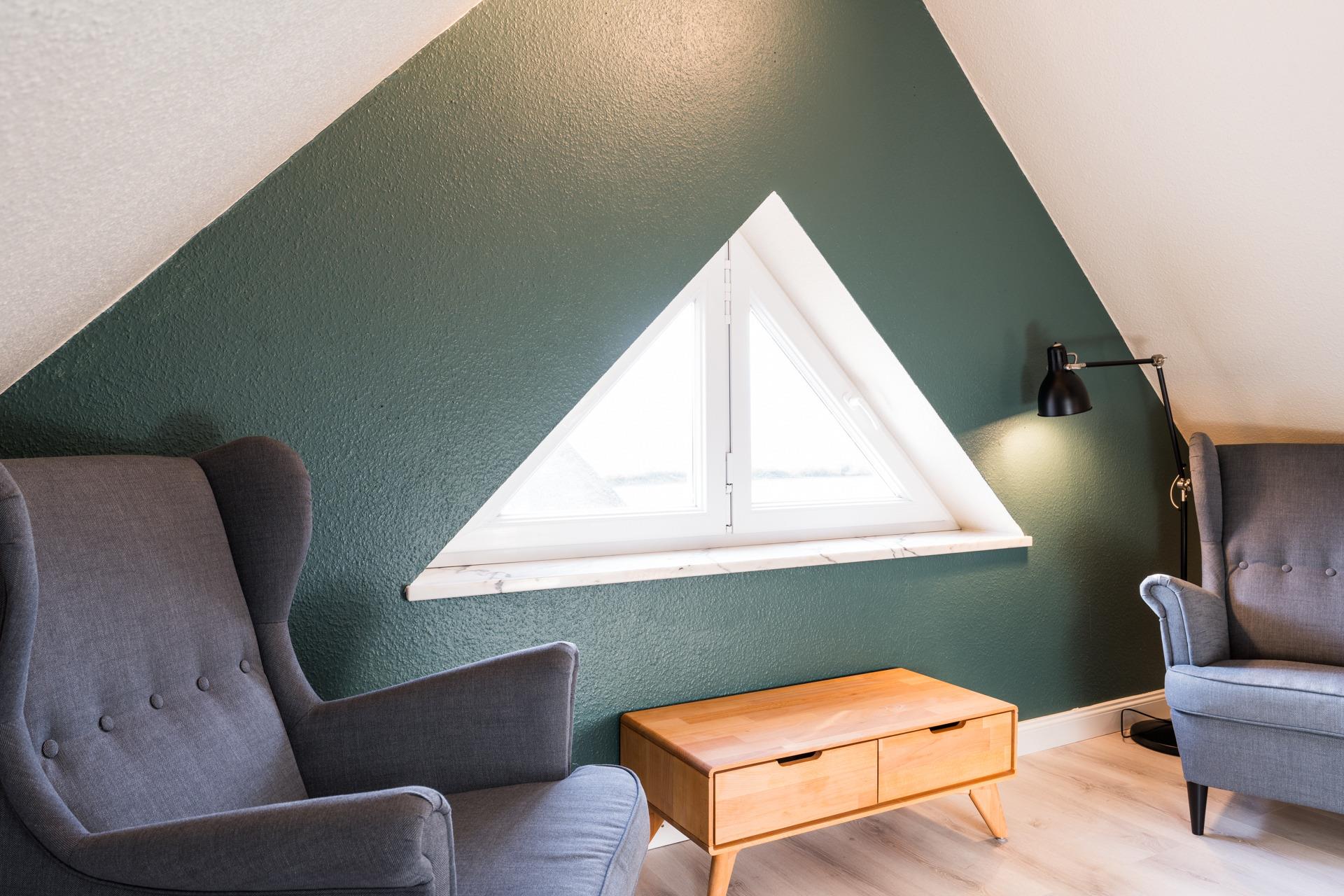 Ein Schlafzimmer mit 1 Doppelbett ein weiteres Schlafzimmer mit 2 Einzelbetten im gemütlichen Spitzboden.