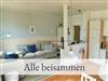 Der Wohnbereich ist zur Küche hin offen gestaltet. Hier befindet sich neben dem SAT TV auch eine Audio-Anlage mit Internetradio, Bluetooth, Spotify etc. Zudem können Sie kostenfrei mit Ihren Geräten über WLAN ins Internet.