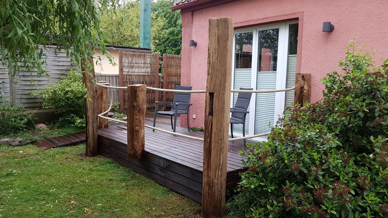 Der "Vogelflug" befindet sich im Erdgeschoß und wurde großzügig gestaltet. Es erwarten Sie eine Diele mit Garderobe, eine separate voll eingerichtete Kochküche, einSchlafzimmer mit Doppelbett, ein Bad mit ebenerdiger Dusche (behindertenfreundlich), ein Wohn-/Esszimmer mit Zugang zur großen Eckterrasse und Garten. Der große Esstisch bietet Raum für gemütliches Essen und Beisammensein,ein Sofa mit Schlaffunktion lädt zum Relaxen ein. Die 23m² große Terrasse mit Gartentisch und Stühlen rundet den Wohnkomfort ab. Zusätzlich steht Ihnen der große Garten mit Grillplatz zur Verfügung. Auf Wunsch stellen wir Ihnen ein Babybett bzw. Kinderhochstuhl.