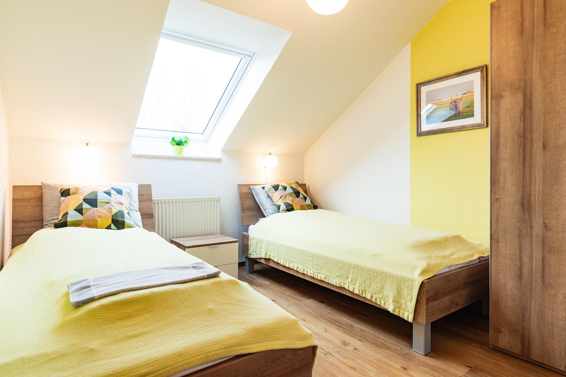 Das Haus an der Pferdekoppel liegt ca. 150 m von unserem Ferienhof entfernt am Ortsrand. Die schöne, helle und komfortable Ferienwohnung Nr. 4 liegt im 1. OG des Ferienhauses und verfügt über eine eigene Gästeterrasse. Die Wohnung besitzt 3 Schlafräume, ein Wohnzimmer, eine Küche und ein Duschbad. Die Küche ist komplett ausgestattet mit allem, was es für einen erholsamen Urlaub benötigt. Das Badezimmer besitzt eine großzügige Dusche und ist hell und freundlich, neu renoviert. Aus dem Wohnzimmer haben Sie einen wunderschönen Blick über unsere Pferdewiese und die Felder, fast bis zum Meer. Waschmaschine und Trockner können kostenpflichtig bei uns mitbenutzt werden.