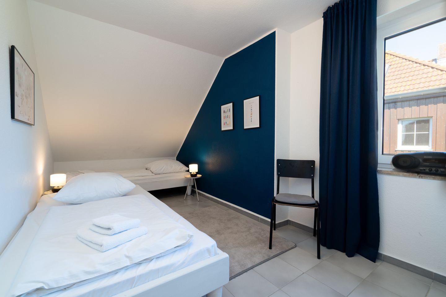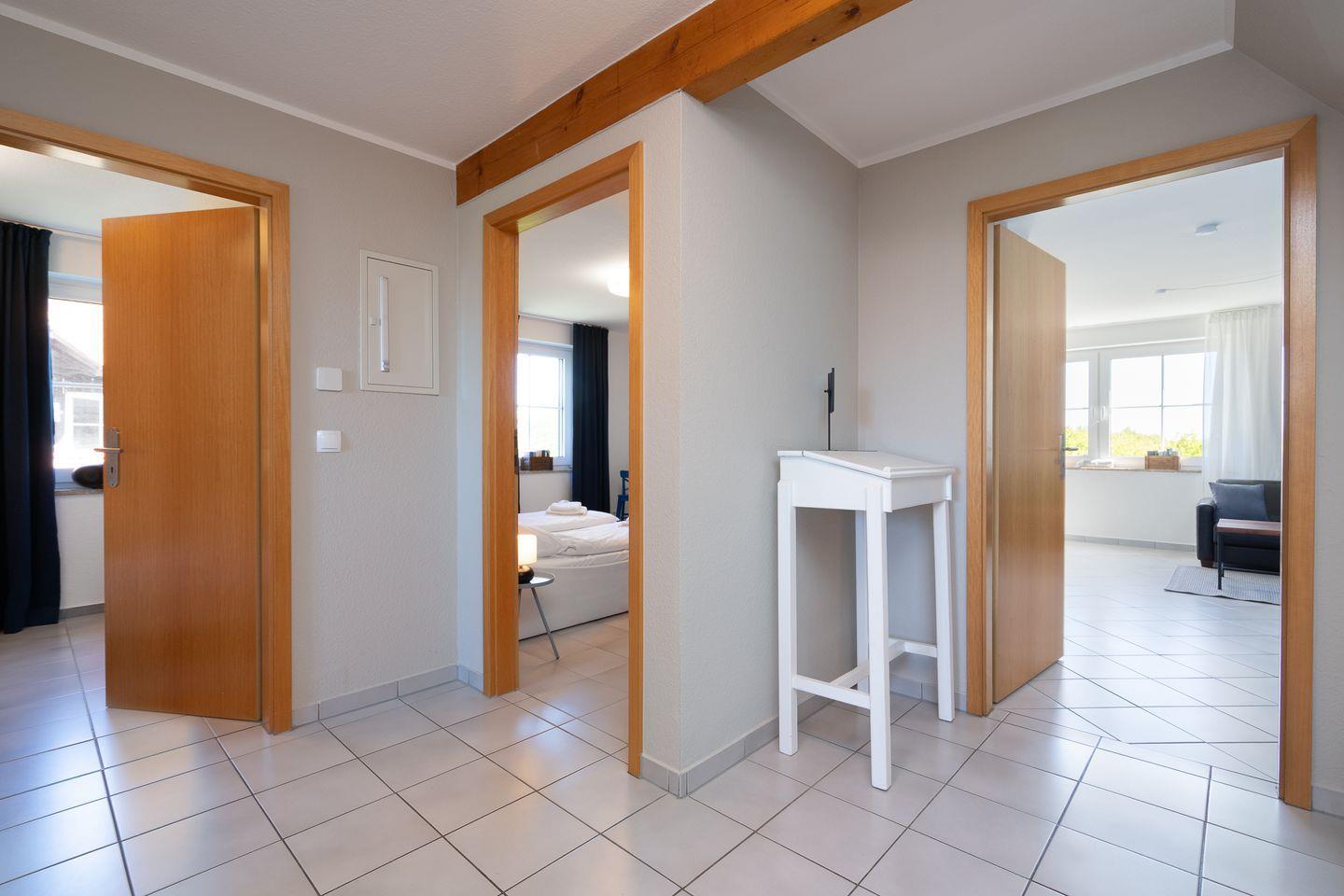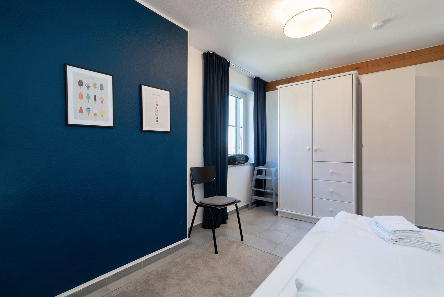 Die Wohnung hat zwei Schlafzimmer, eines als Elternschlafzimmer mit einem Doppelbett und eines als Kinderzimmer mit zwei großen Einzelbetten und Babybett. Erfreuen Sie sich an der umfangreichen Ausstattung, die Dank LTE und separater Zimmer auch einen verlängerten Aufenthalt mit mobile Working/ Workation ermöglicht. Ein dänischer Ofen für die Übergangszeit bringt im Wohn-/Essbereich ebenfalls erholsame Gemütlichkeit.