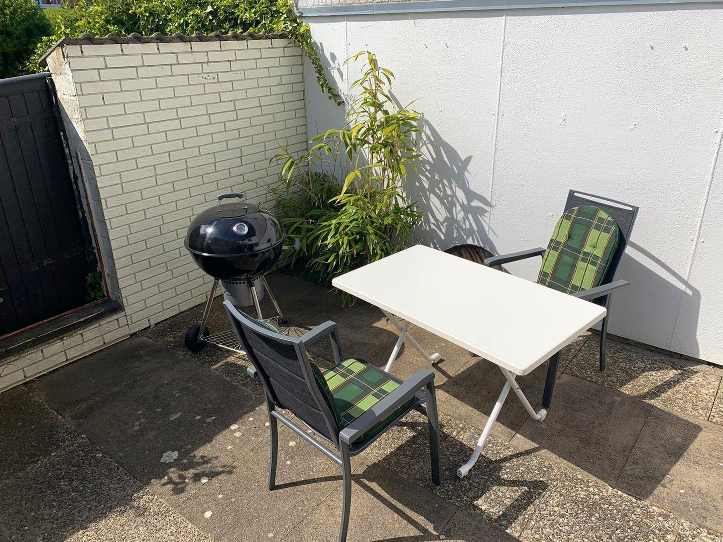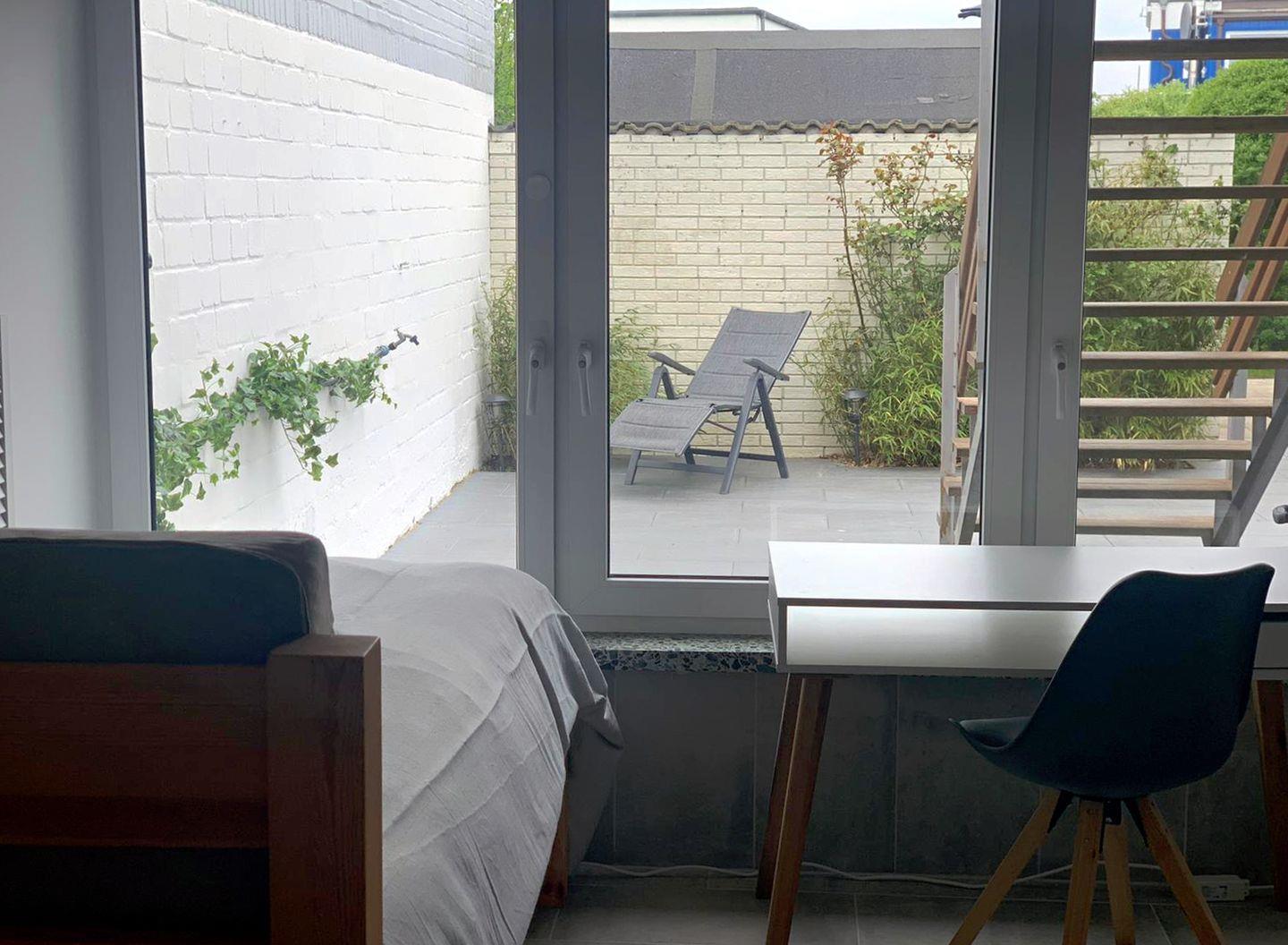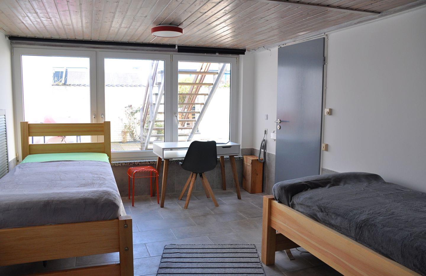Im Erdgeschoss erwartet Sie ein gemütliches Schlafzimmer mit zwei Einzelbetten sowie ein Gäste-WC. Von hier aus gelangen Sie in den geschützten Innenhof, der direkt in den liebevoll angelegten Garten führt – ein wunderbarer Ort zum Lesen, Spielen oder einfach zum Durchatmen.