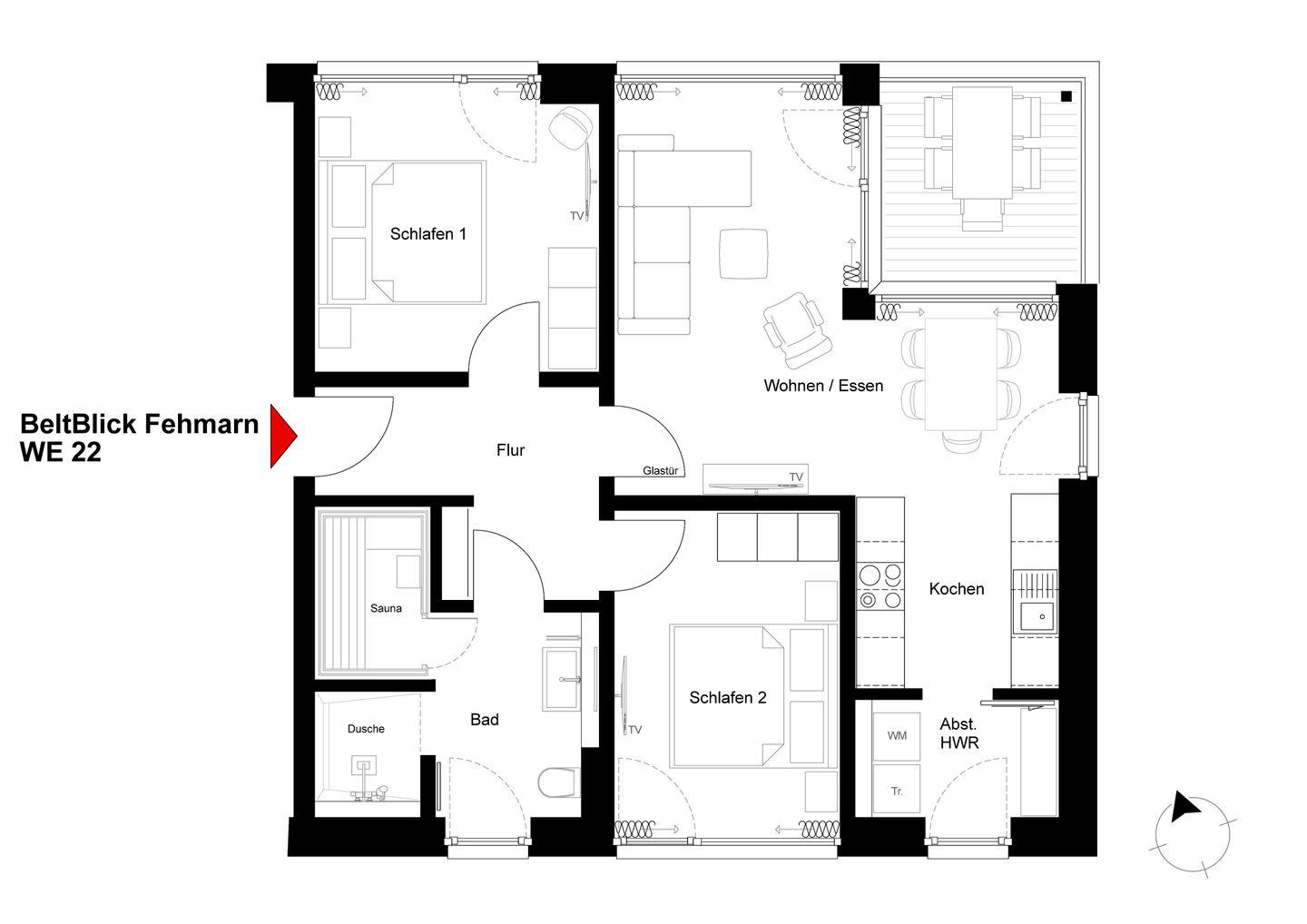 Ferienwohnung BeltBlick 22 mit Sauna und Meerblick