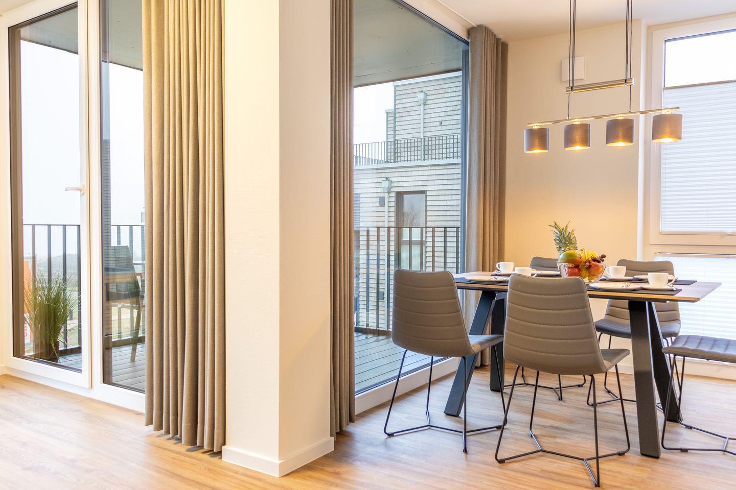 Moderne Ferienwohnung BeltBlick 22 mit Meerblick, privater Sauna und überdachtem Balkon in direkter Ostseenähe.