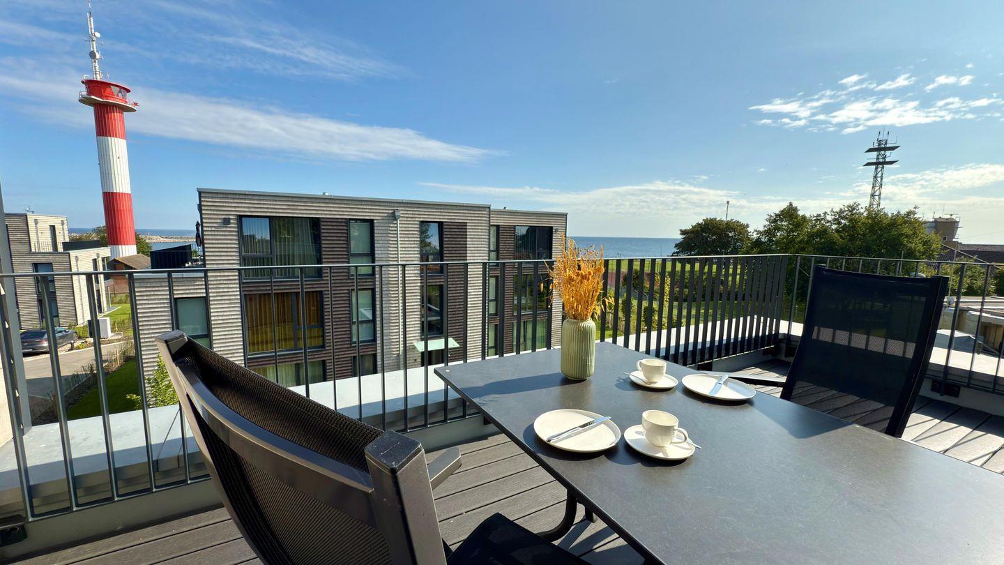 Moderne Dachterrassenwohnung mit Sauna, Meerblick und familienfreundlicher Ausstattung direkt an der Ostsee.