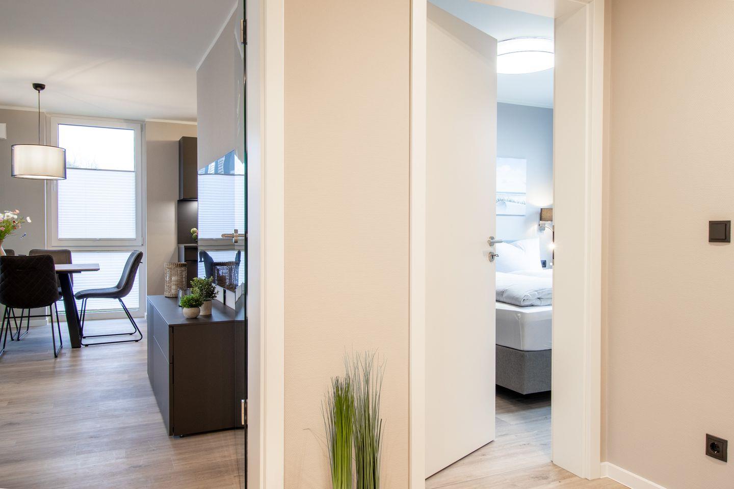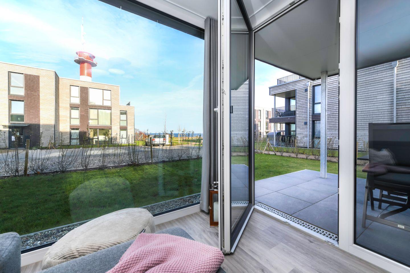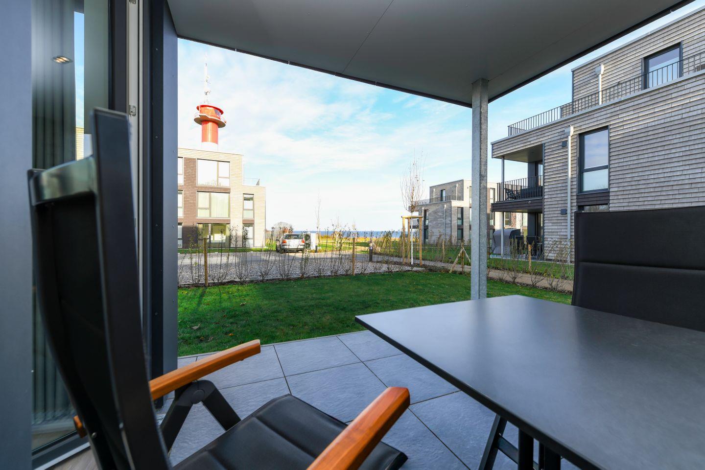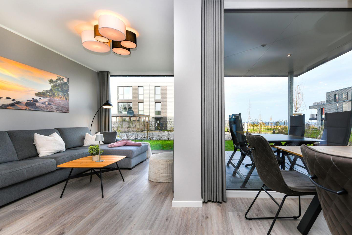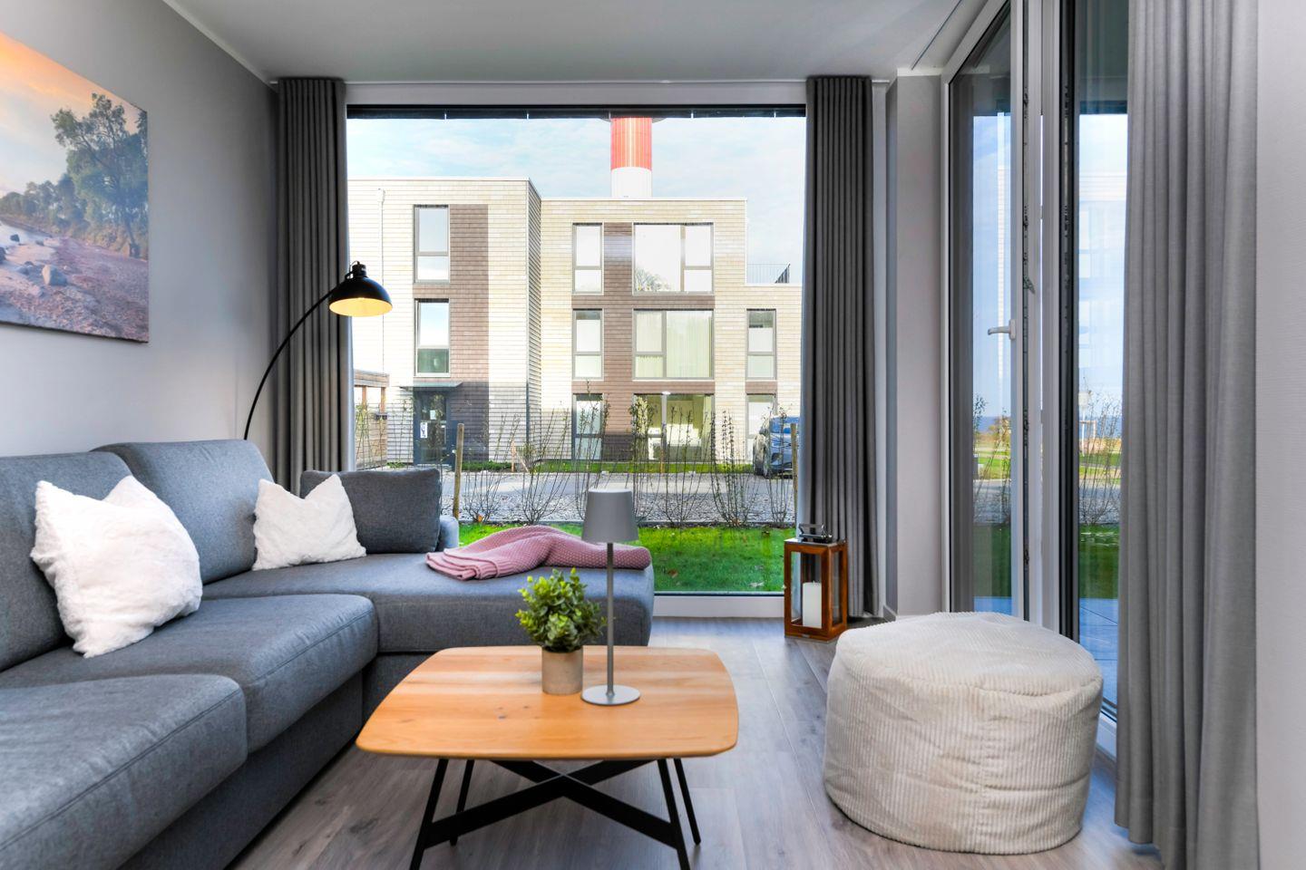 Moderne Ferienwohnung BeltBlick 20 mit Sauna, Terrasse und Meerblick, nur 100 m vom Ostseestrand auf Fehmarn entfernt.