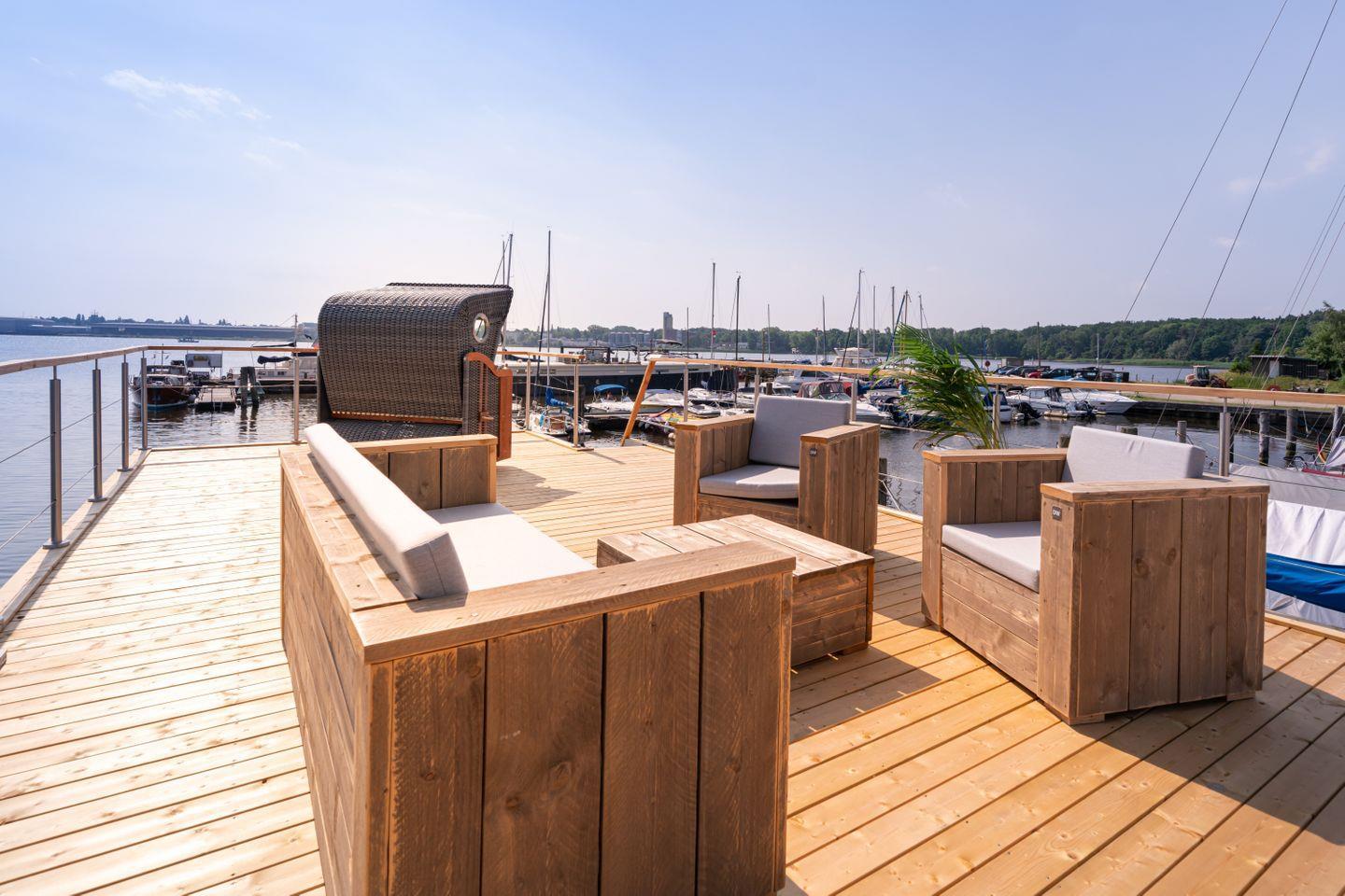 Für Mahlzeiten an der frischen Luft steht euch die überdachte Terrasse auf dem Unterdeck zur Verfügung. Auf dem Oberdeck lädt ein Strandkorb oder das gemütliche Sofa dazu ein, Sonne, Wind und Wetter in vollen Zügen zu genießen.