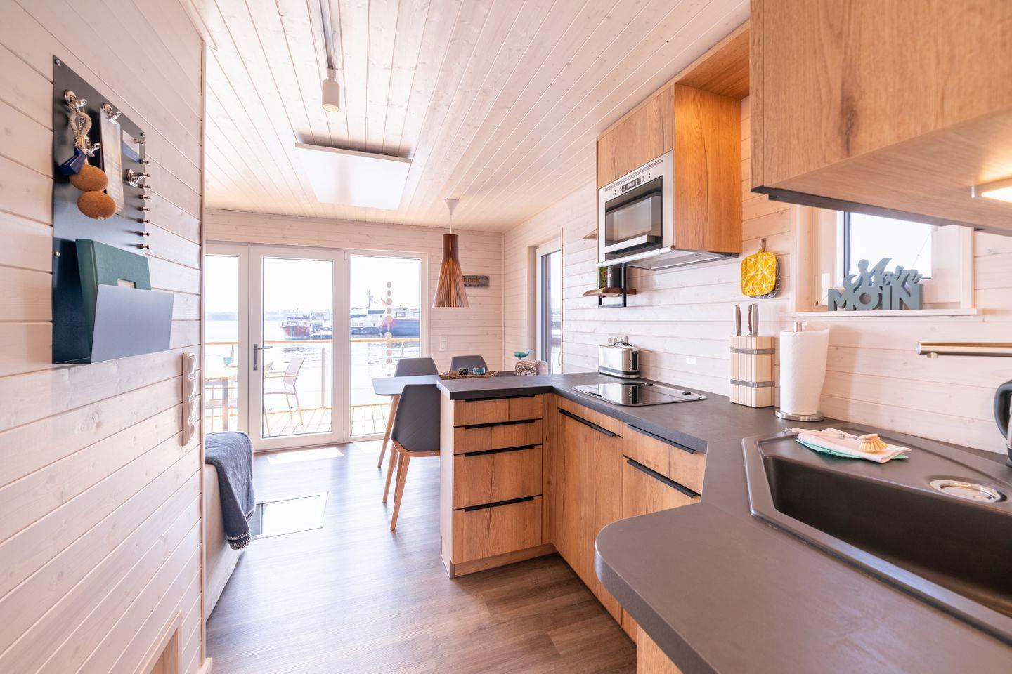 Im Wohnbereich ist ausreichend Platz zum Lümmeln, gemeinsam Essen, Entspannen und natürlich, um den Blick übers Wasser schweifen zu lassen.
