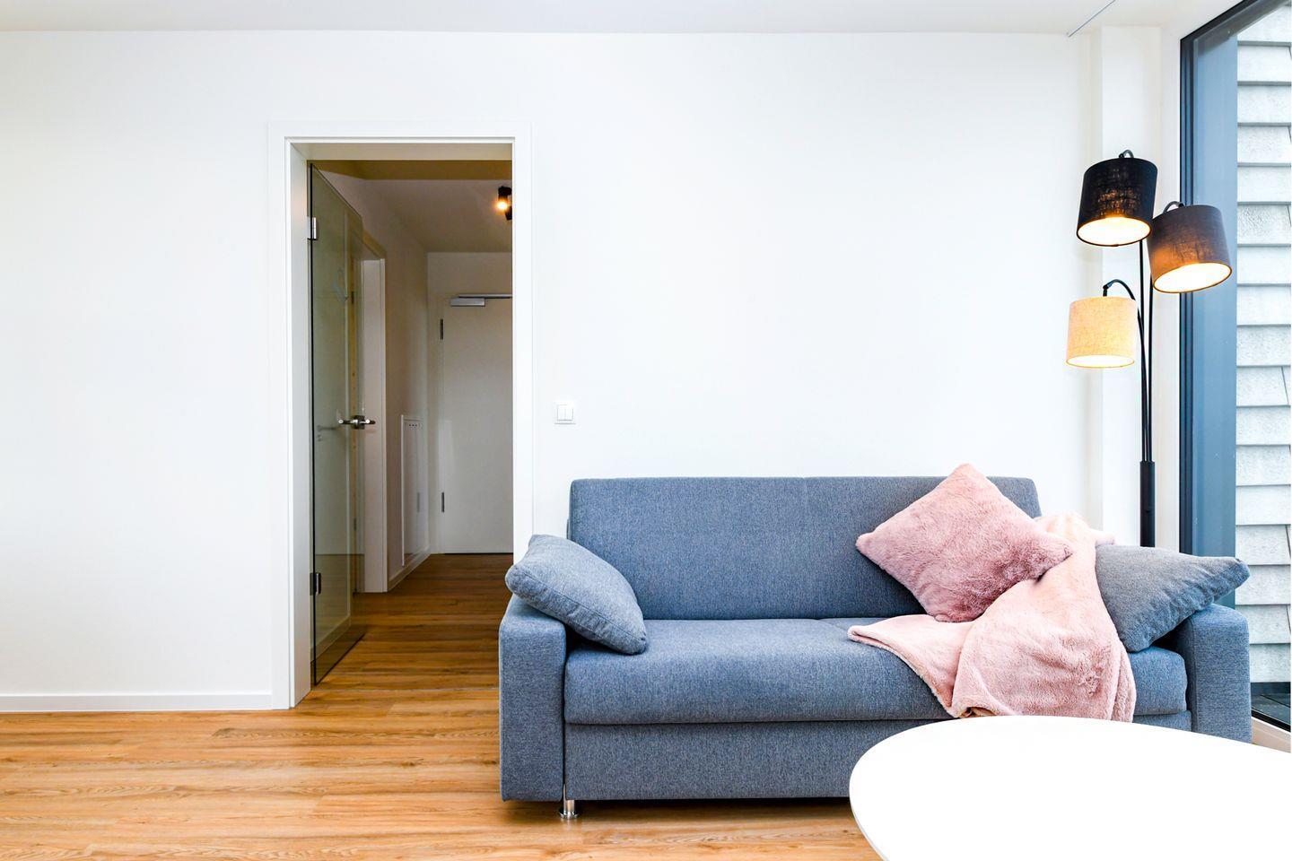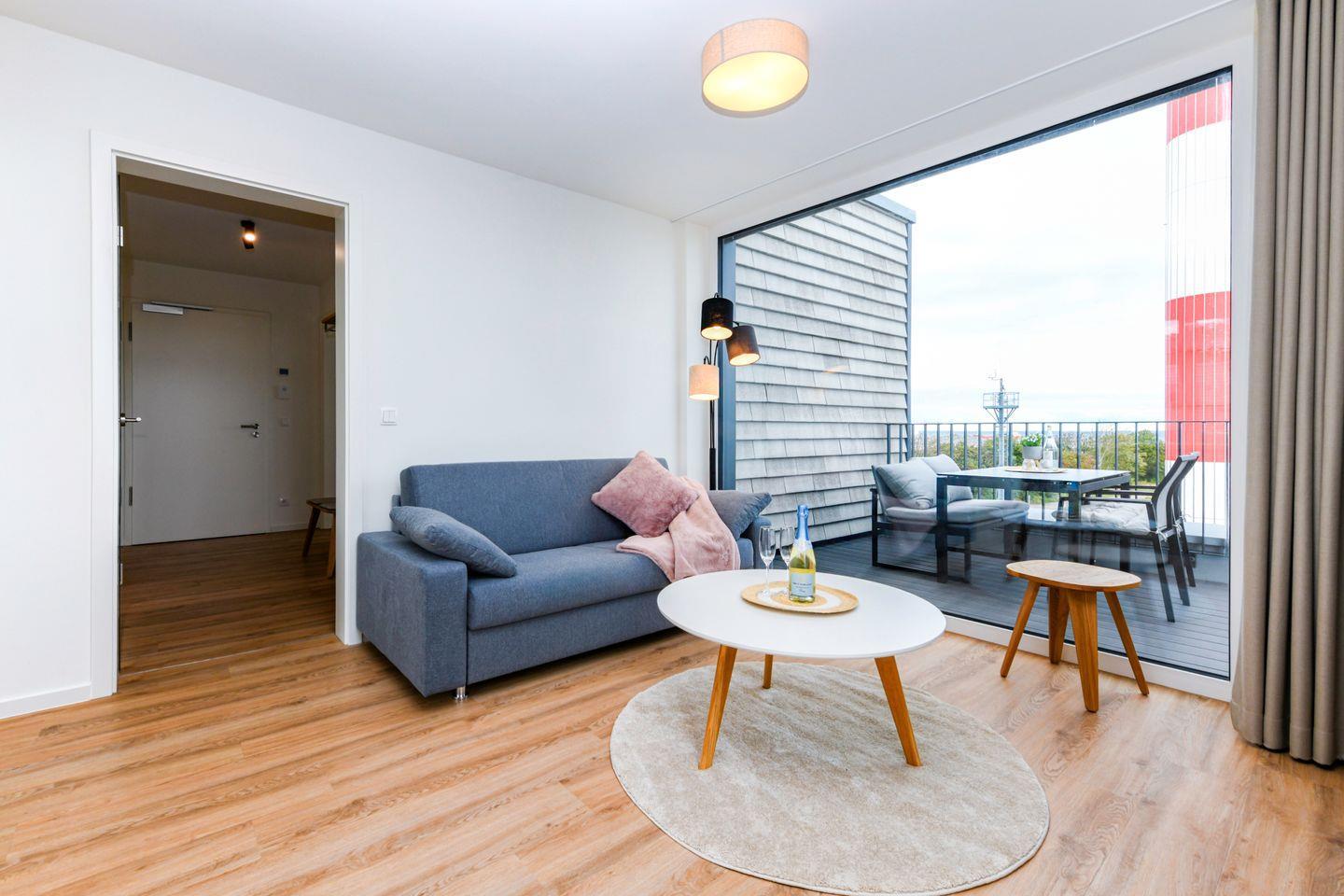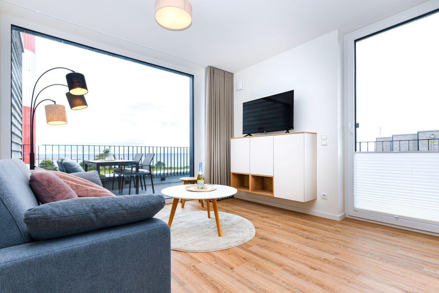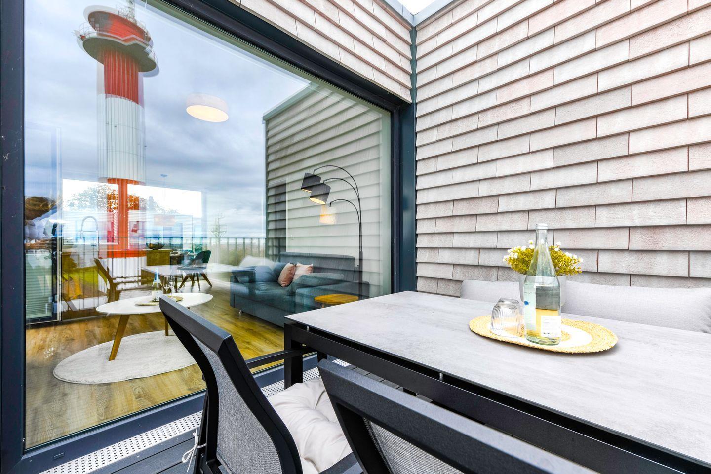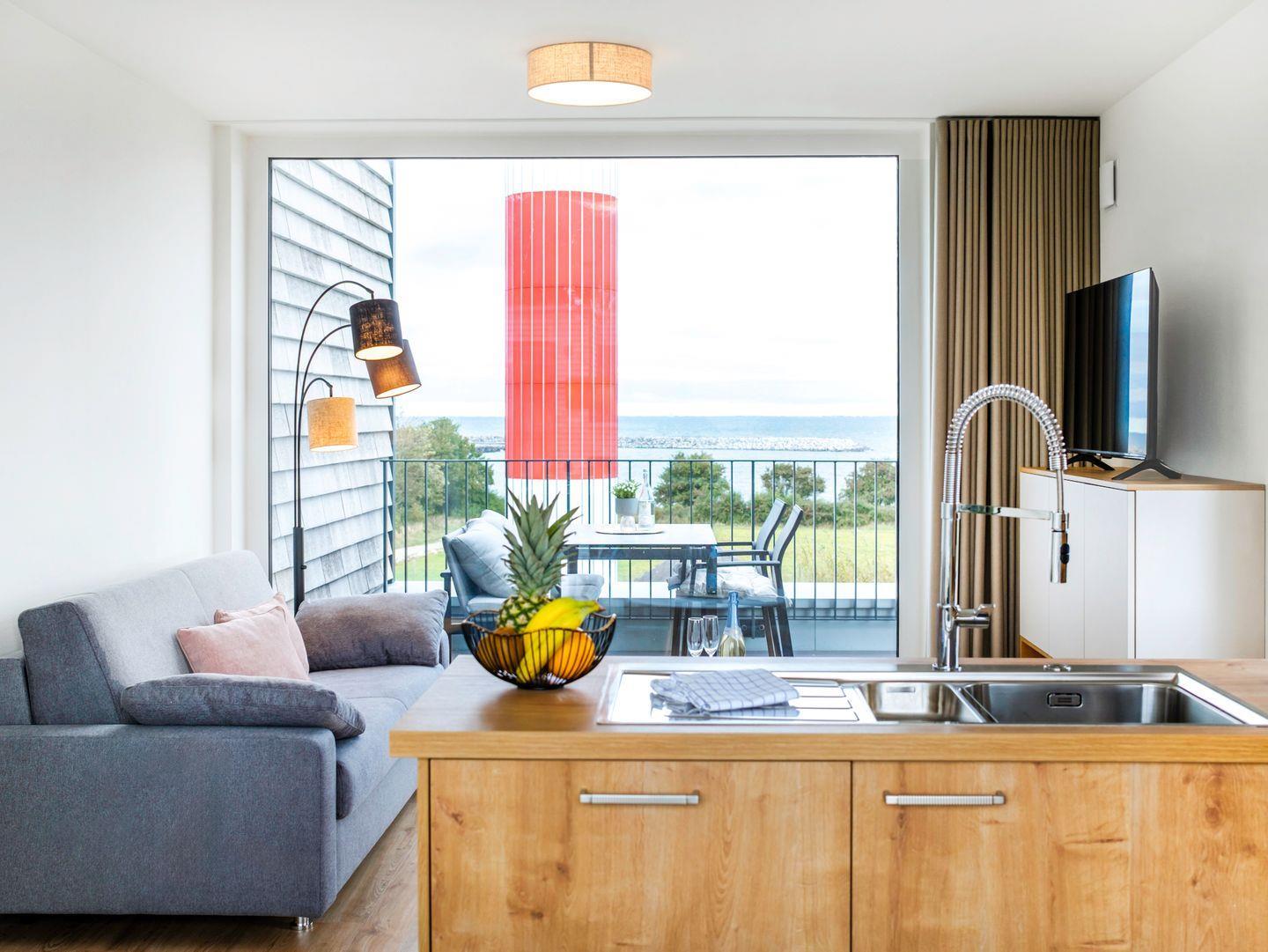 Erleben Sie Meerblick, private Sauna, Dachterrasse und Strandnähe in der modernen Ferienwohnung BeltBlick Aurora auf Fehmarn.