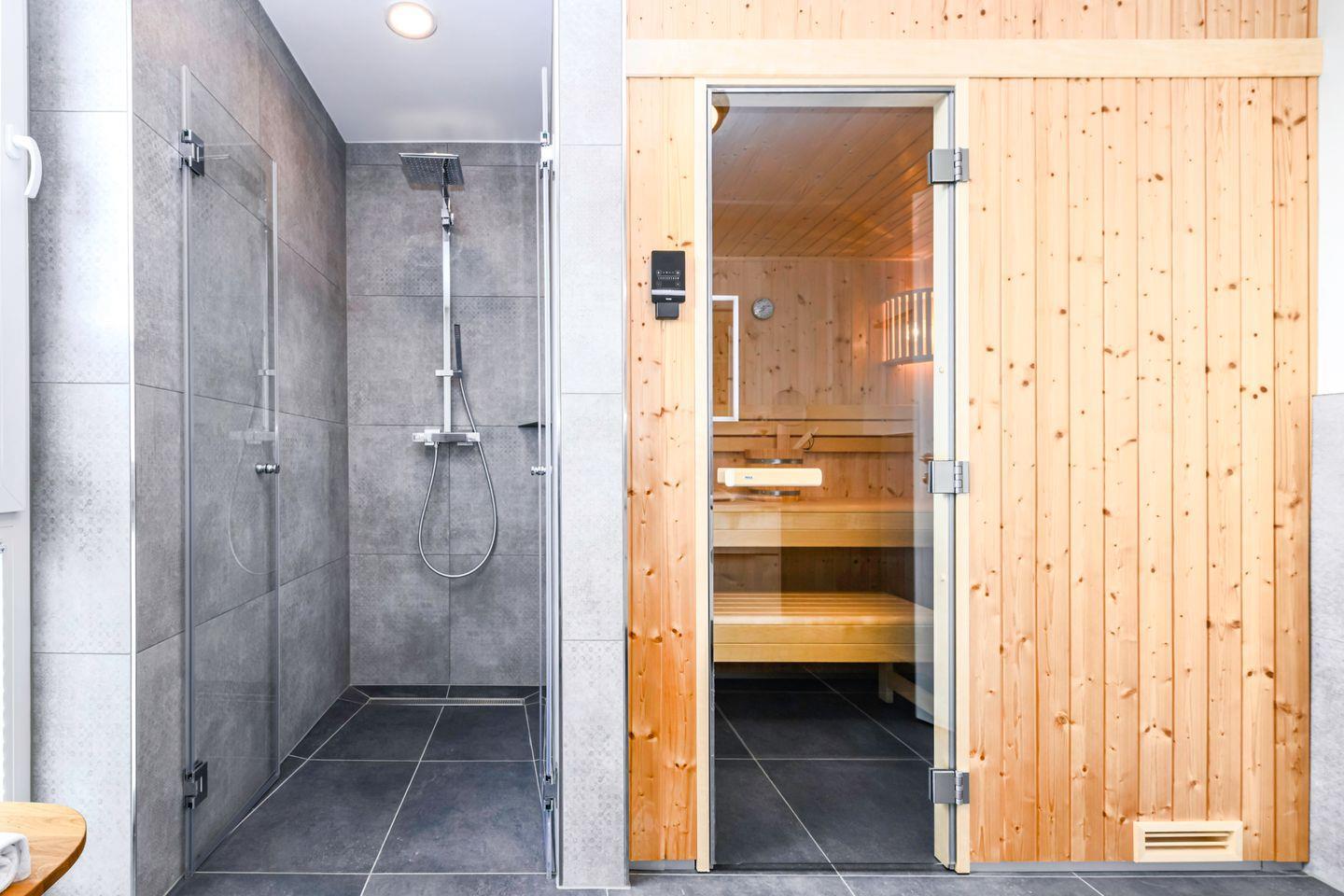 Dein privater Wellnessbereich erwartet dich: Eine moderne Sauna und eine großzügige, ebenerdige Dusche machen jeden Urlaubstag zum Erholungstag. Ob nach einem Strandspaziergang oder einer Fahrradtour – hier kannst du neue Energie tanken und dich rundum verwöhnen.
