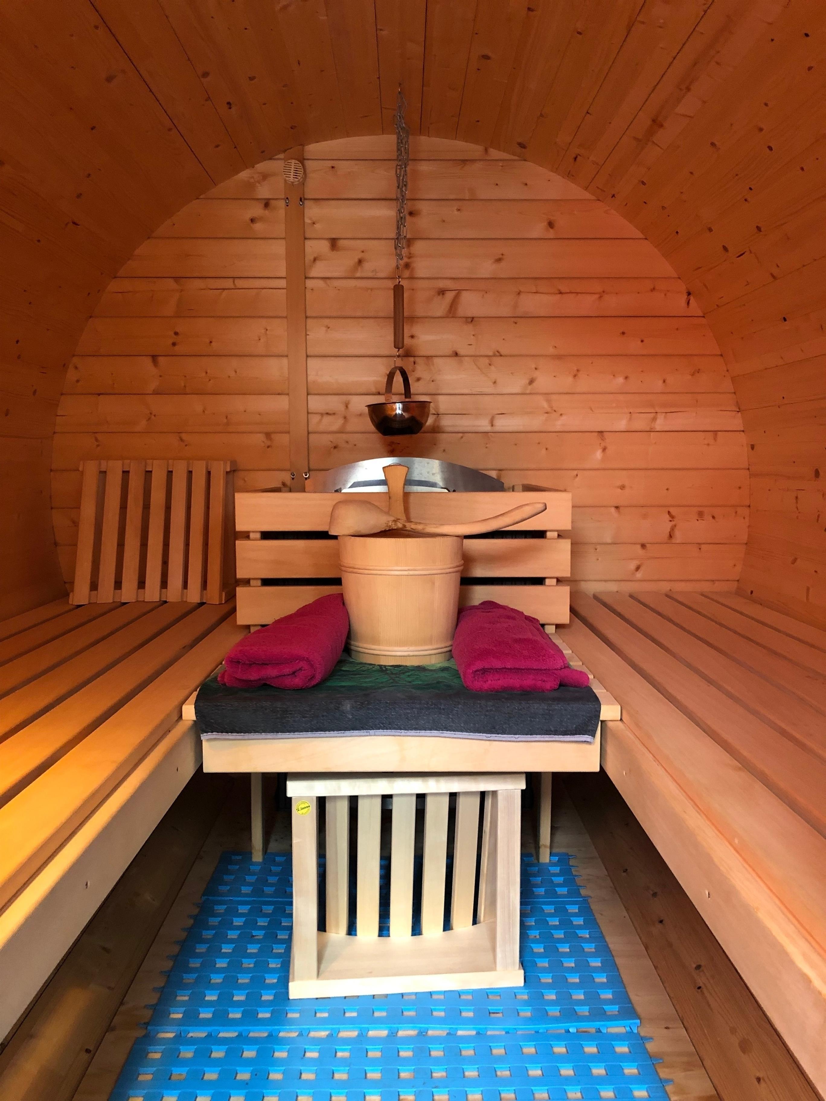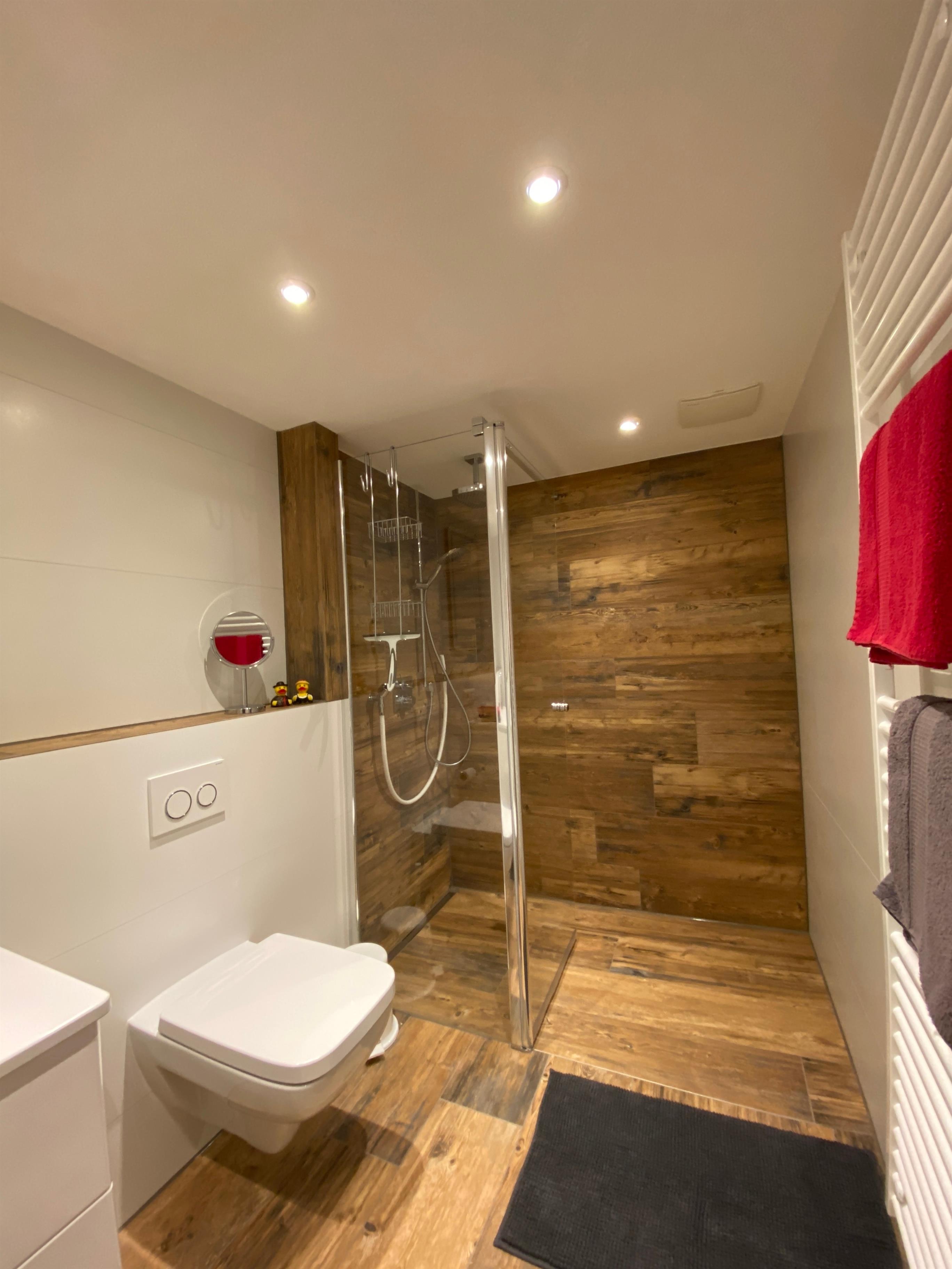 Die voll ausgestattete Wohnung inkl. Sauna in Alleinnutzung (die Saunanutzung ist bei einer Buchung von 4 - 7 Tagen einmal kostenfrei. Bei einem Aufenthalt von 14 Tagen ist die Sauna zweimal, bei 21 Tagen dreimal kostenfrei. Jede weitere Nutzung in der gebuchten Zeitspanne berechnen wir mit 20 Euro, die Bezahlung erfolgt nach Nutzungshäufigkeit vor Ort. Eine eigene Sonnenterasse bietet viel Raum zu entspannen und den Tag zu genießen. Der "Wellnessbereich" wurde Ende 2022 komplett neu gestaltet mit edlen Fliesen und einer begehbaren Brause- und Regendusche.