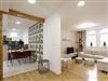 Die gesamte Wohnung ist mit eleganten metallischen Fliesen und attraktiven Tapeten ausgestattet.
